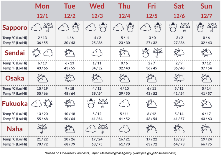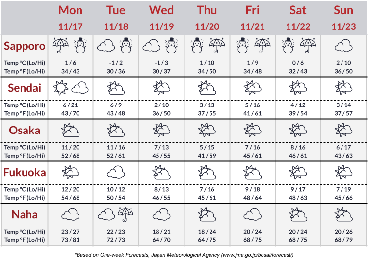 7-Day Japan Weather Forecast: Tokyo, Osaka, Sapporo, Sendai, Fukuoka, Naha – Plan & Pack Smart for Your Trip
