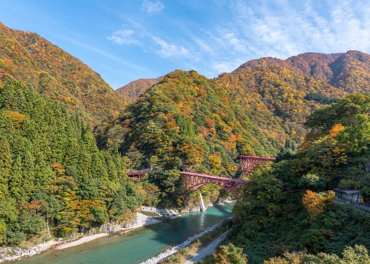 Hop aboard the Kurobe Gorge Railway and enjoy a ride along one of Japan’s most stunning valleys! This open-air train winds past vibrant autumn forests, steep cliffs, and the turquoise Kurobe River. Read our report below for details.