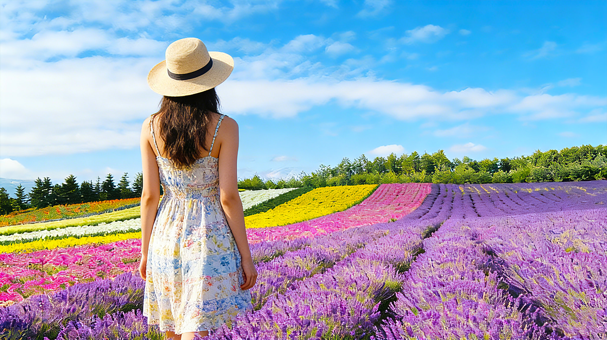 Hokkaido Biei Furano Summer Flower Sea Tour | Patchwork Road (drive-by), Seven Star Tree, Platinum Blue Pond, Shirahige Falls, Shikisai-no-oka, Herb Garden, Tomita Farm
