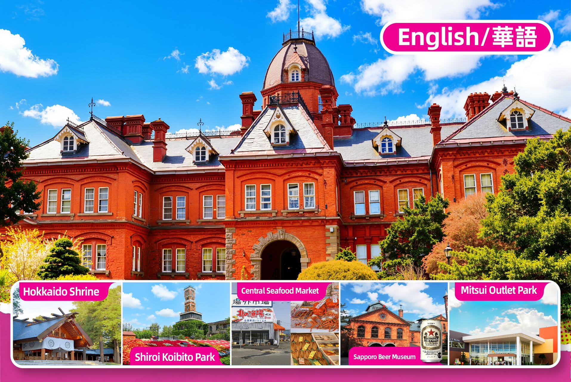 Pre-Departure Notice: Kindly be reminded that all final information regarding your departure the following day (including details of your tour guide, driver, and vehicle) will be sent via email between the afternoon and evening of the day before your trip. To ensure smooth receipt, please be sure to check your email (including your spam folder). Thank you for your attention. This itinerary will take you on an efficient tour of Sapporo's city center and the must-visit landmarks in its suburbs, allowing you to enjoy history, culture, cuisine, and shopping all in one day: Former Hokkaido Government Office Building: Visit this symbolic historical building of Sapporo and admire its red brick and green tile American Neo-Baroque style. As a symbol of the Hokkaido pioneering era, it is also a popular photo spot. Hokkaido Shrine: Explore Sapporo's guardian shrine and experience the solemn Japanese atmosphere in the tranquil forest trails. Shiroi Koibito Park: Step into this fairytale-like English castle, witness the
