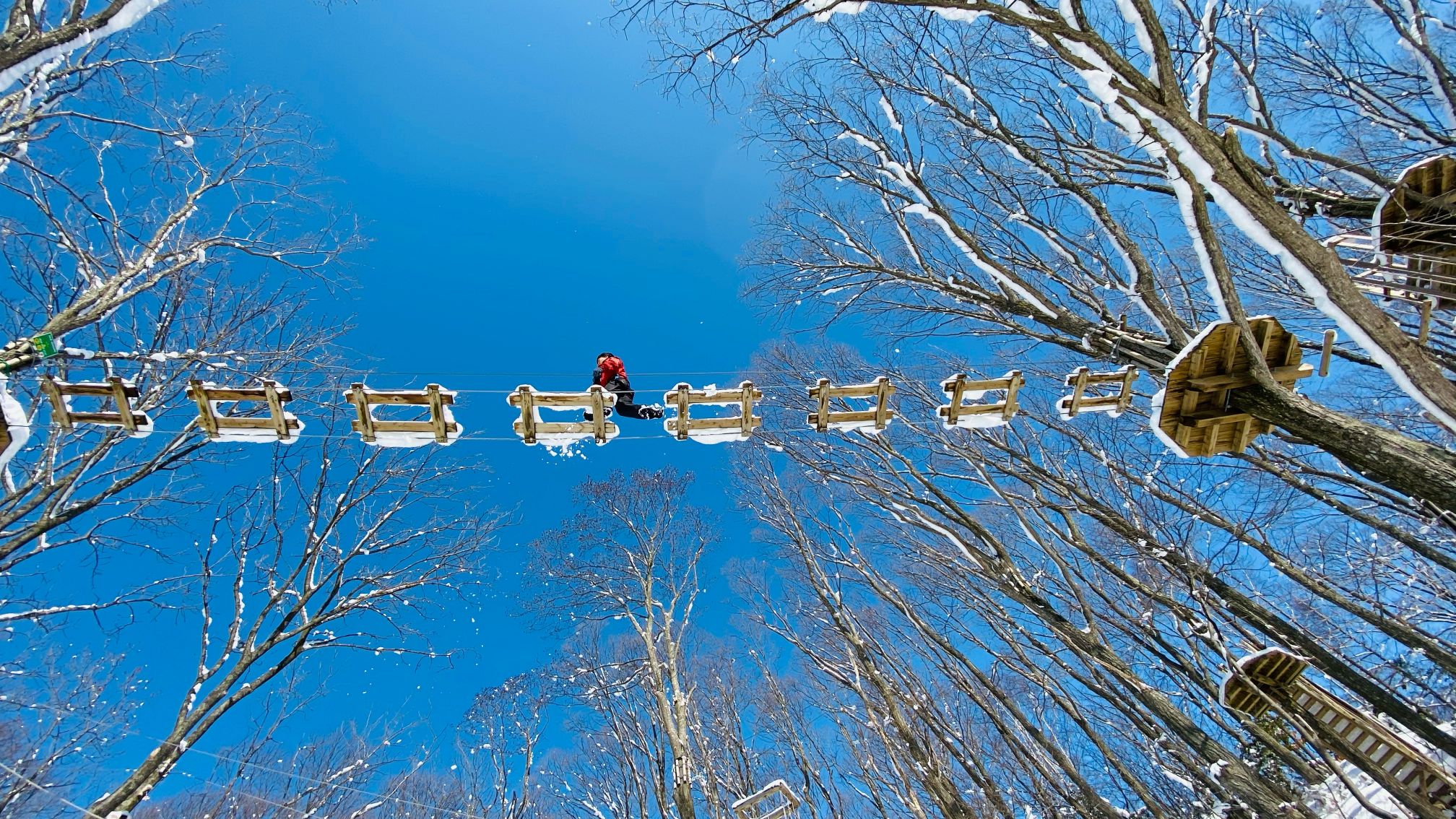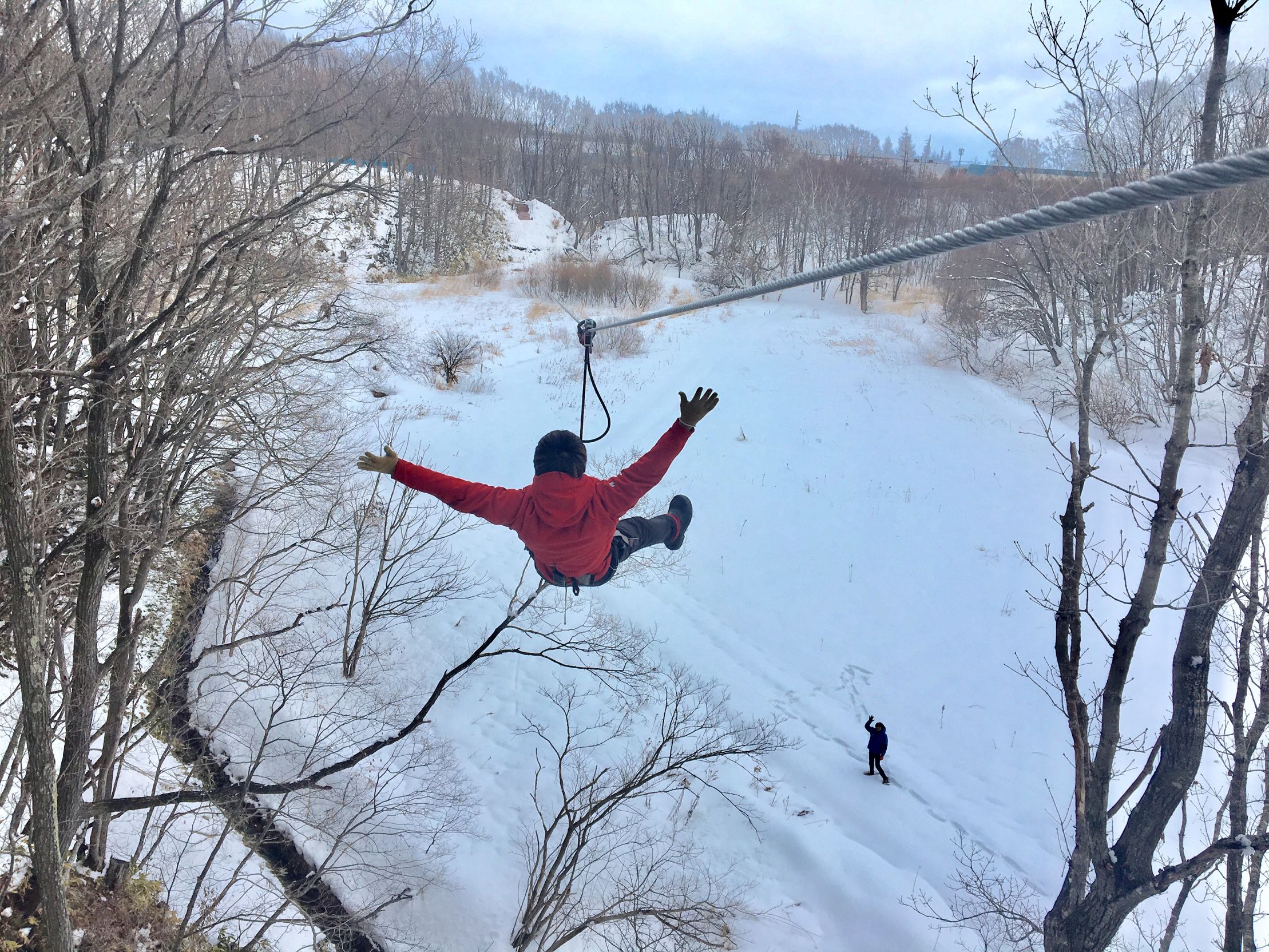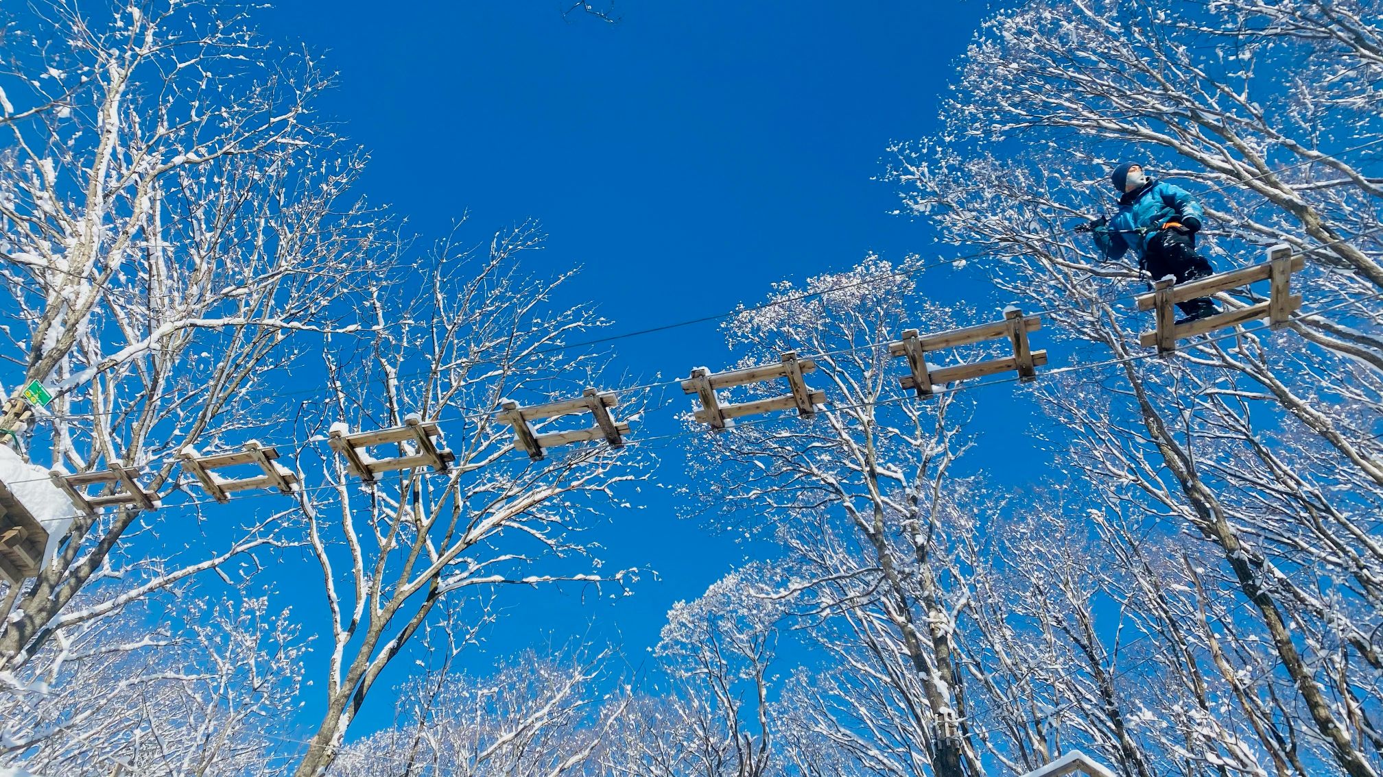 Only in Hokkaido! Enjoy a ZIP TRIP TOUR in the powdery snow of a winter wonderland! You can participate with peace of mind as an instructor will give you a lecture. Soar through a snow-covered forest on a long zip slide up to 200m! You can enjoy the snowy scenery from above and also experience the cold! Taxi transfer from JR Shimamatsu Station to the venue is included!