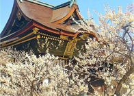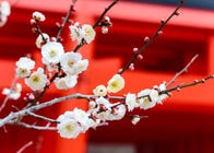 From early February, plum blossoms begin to bloom across Kyoto, with the most famous viewing spot being Kitano Tenmangu Shrine. Around 1,500 plum trees—white, red, single, and double-petaled—decorate the grounds in full splendor. On February 25, the shrine hosts the Plum Blossom Festival to honor Sugawara no Michizane, the deity of learning. Visitors can also experience tea service by geiko from nearby Kamishichiken. The crisp winter air adds a sense of solemn beauty to the visit.