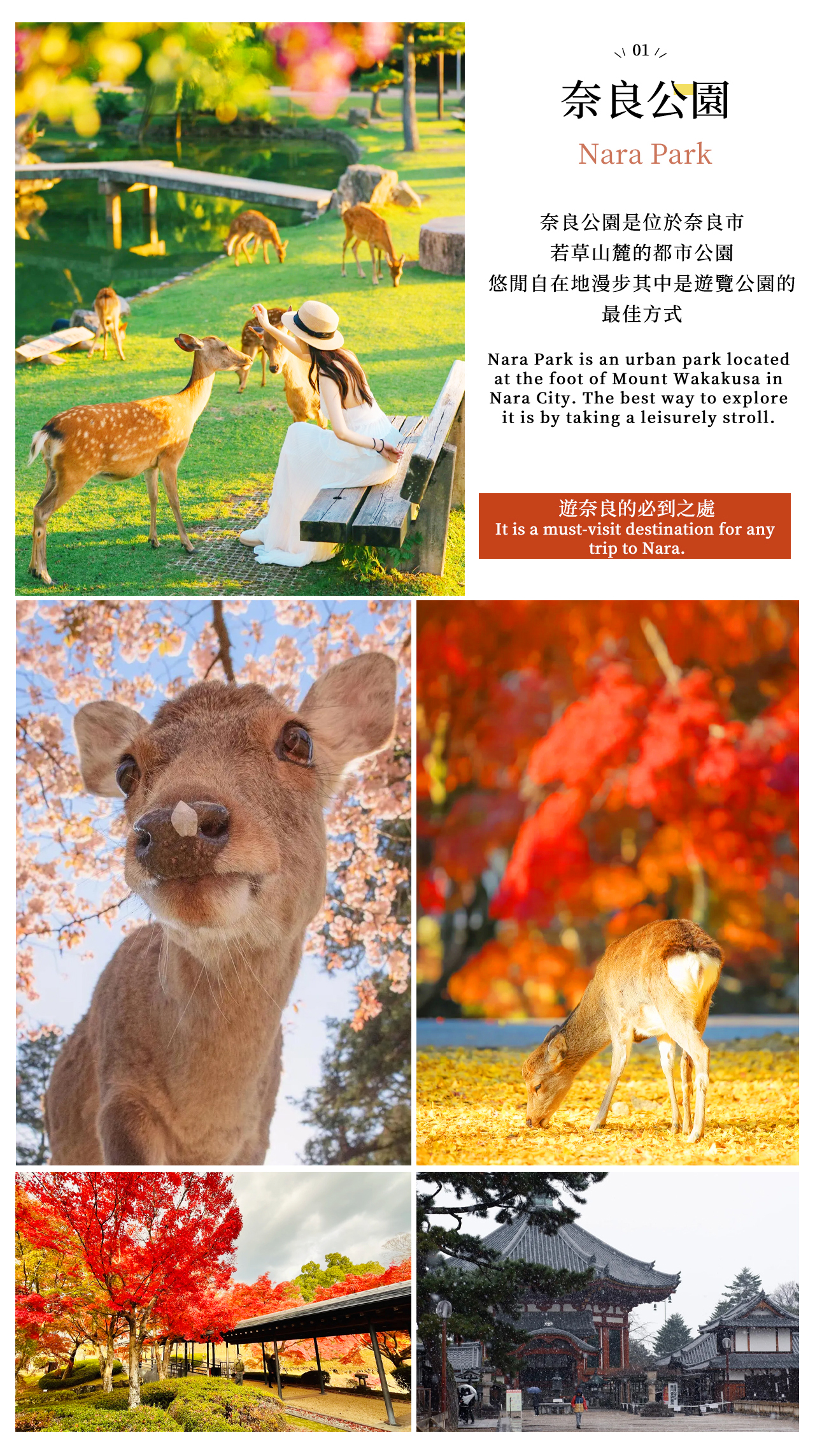 Departing from Osaka Nipponbashi, first explore Nara: interact with and feed the friendly, spiritual deer, visit Todai-ji Temple to see the world's largest wooden structure, climb Mount Wakakusa for a panoramic view of Nara City, and visit Kasuga Taisha Shrine with its vermilion shrine and stone lanterns. Afterward, head to Ikoma Sanjo Amusement Park and enjoy a panoramic view of Osaka, Kyoto, and Nara from a high-altitude pedal bike; if the amusement park is closed, visit Hirakata Park instead to ride wooden roller coasters and Ferris wheels for undiminished fun. This flexible and unhurried itinerary allows families, couples, and individuals alike to immerse themselves in the essence of Kansai, ensuring a relaxing and enjoyable experience.