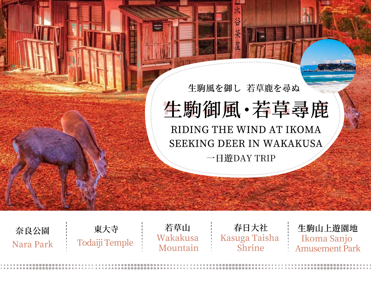 [Nara] Mount Ikoma & Nara Fun Trip | Sky Cycle + Nara Park Deer Feeding + Todai-ji Temple + Wakakusa Mountain Overlook Day Trip | Depart from Osaka (Ikoma Sanjo Amusement Park or Hirakata Park Optional)