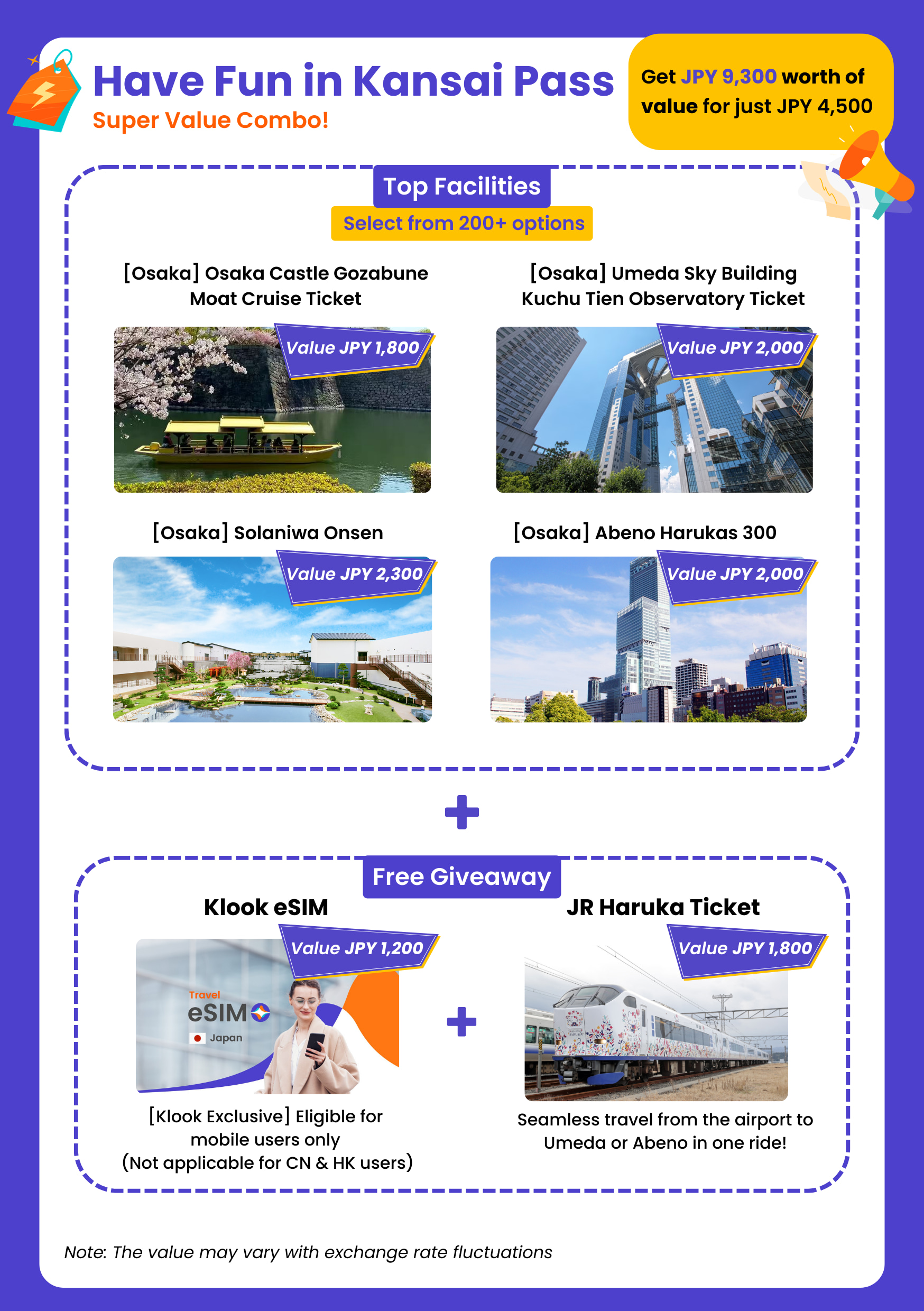 - * **Have Fun in Kansai Premium Pass:** Enjoy Universal Studios Japan, Osaka’s top attractions, and a convenient airport bus transfer, all at no extra cost!