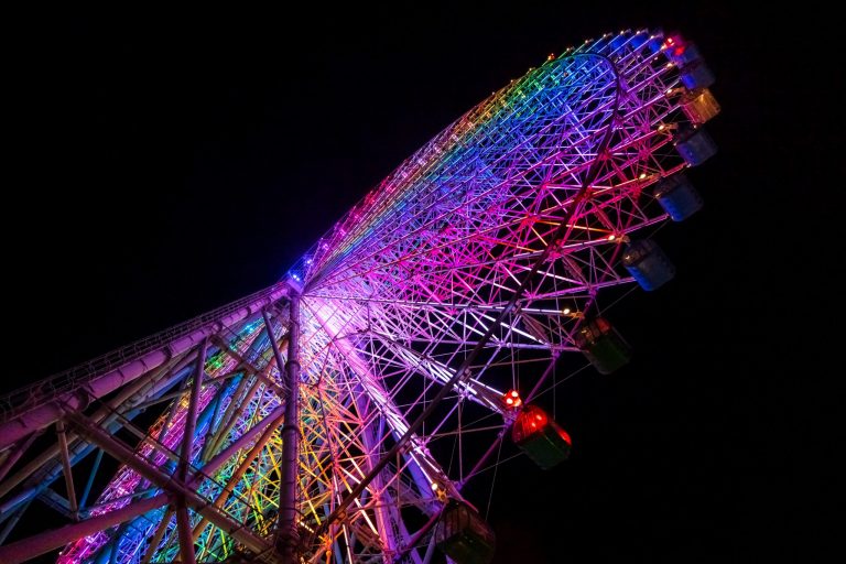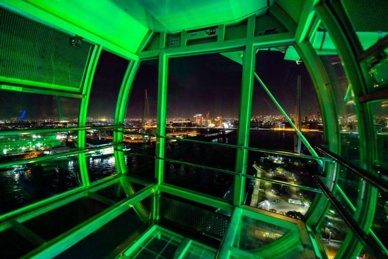 The Tempozan Giant Ferris Wheel is conveniently located just a 5-minute walk from Osakako Station on the Osaka Metro Chuo Line. Tempozan Harbor Village, where the Ferris wheel is situated, is packed with many other attractions and can be enjoyed by families, couples, and friends alike. The see-through gondolas offer a 360-degree view of Osaka, making you feel as if you are floating in mid-air.