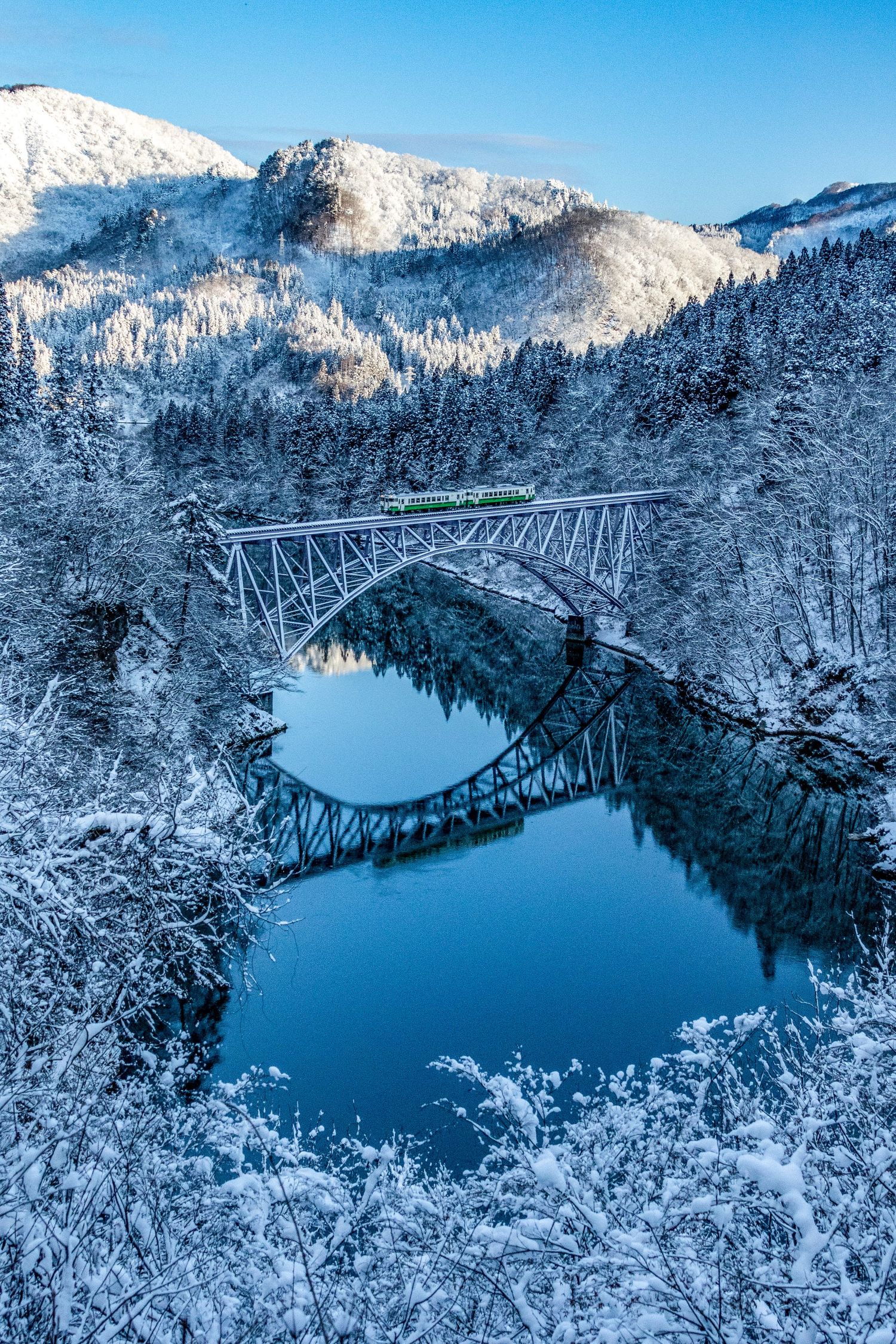 - On the Tadami Line, you will see the Daiichi Tadami River Bridge. At Lake Inawashiro, you can see swans floating on the lake.