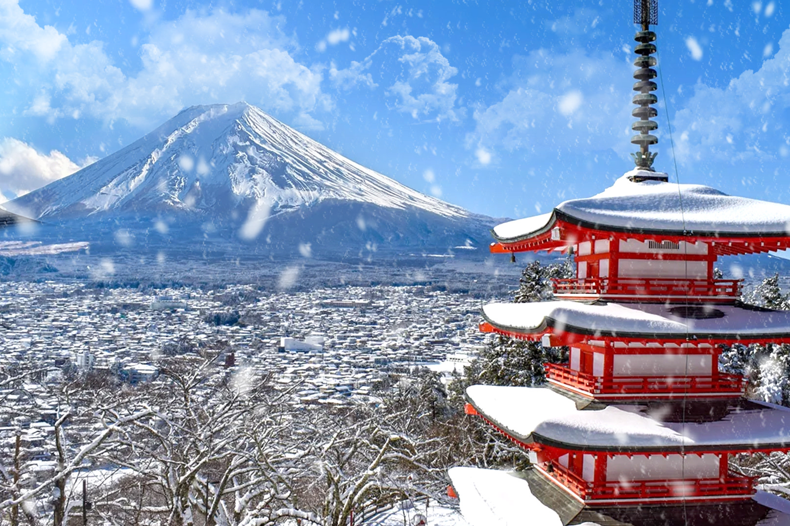 [Fuji Fruit Picking Day Tour] Arakurayama Sengen Park & Seasonal Fruit Picking & Mt. Fuji & Kawaguchiko Cherry Blossom and Maple Festival & Winter FUJITEN Ski Resort Observation Lift Playing in the Snow|Depart from Shinjuku