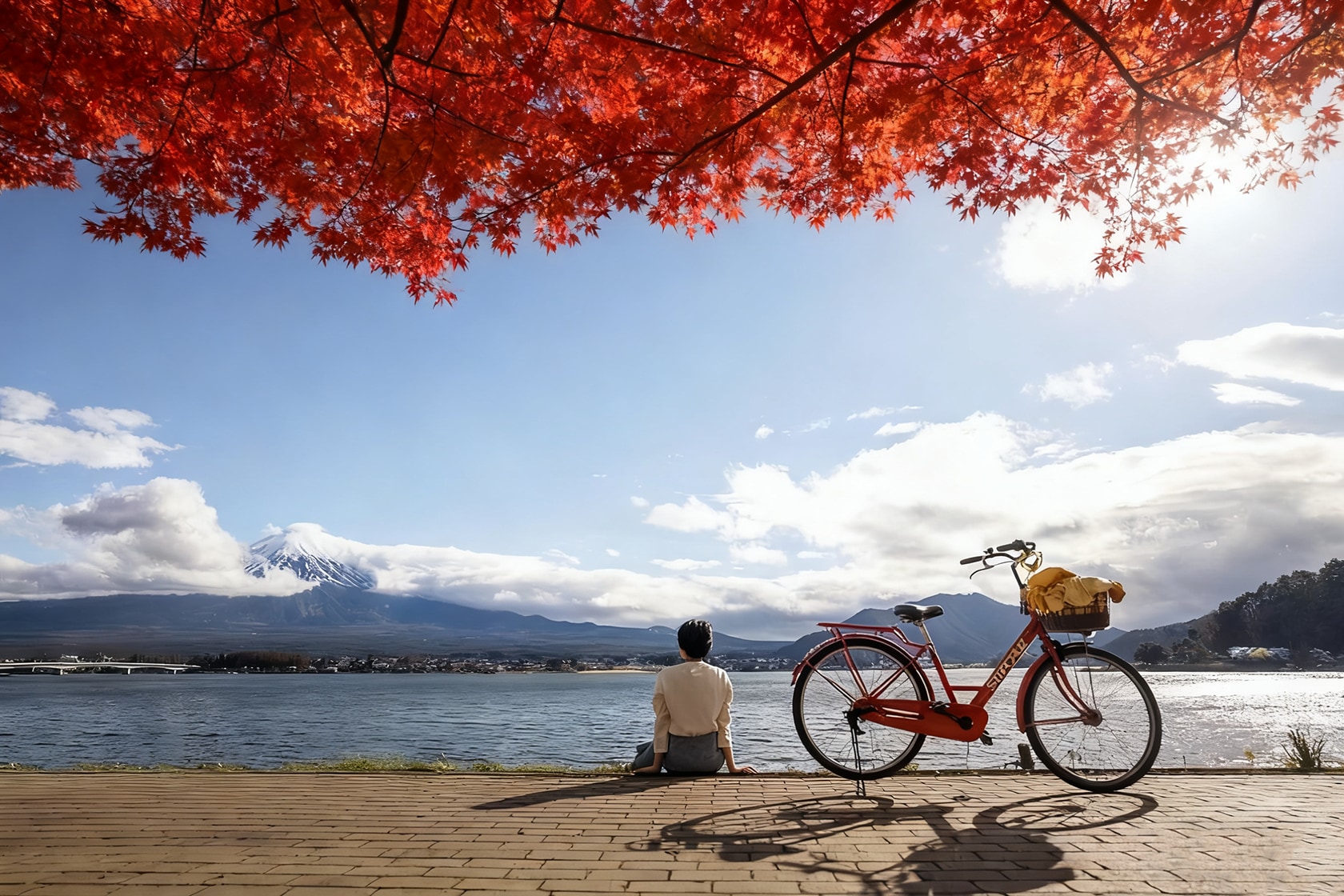 This route encompasses 5 classic must-see attractions and unique cycling experiences in the Mount Fuji area, allowing you to fully experience the diverse charm of Mount Fuji. * First stop: Lake Yamanaka cycling experience (approximately 90 minutes). We will cycle freely along the lakeside and relive the charm of the Olympic cycling track. Cycling fee is already included. If the weather is not good, it will be considerately adjusted to the Swan Lake cruise experience (fee included). * Second stop: Lawson convenience store at Lake Kawaguchi. This is an online-famous spot for taking classic pictures of Mount Fuji, where you can freely take photos and enjoy a simple meal. * Third stop: Lake Kawaguchi Oishi Park. In summer, lavender covers the mountains, and in autumn, broom grass is as red as rosy clouds, forming a stunning picture with Mount Fuji. *From November 1st to 30th, it will be changed to the Maple Corridor of Lake Kawaguchi. * Fourth stop: Ten梯 Town/Ladder Town - Hikawashichikei Store. The panoramic vie