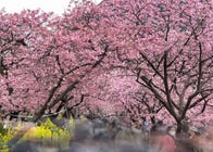 Kawazu-zakura are a type of early-blooming cherry tree that bloom from February to March each year. Unlike the more common Somei Yoshino cherry blossoms, Kawazu-zakura are known for their vibrant pink petals and extended bloom period, making them a favorite for visitors eager to experience the beauty of cherry blossoms before spring officially arrives.