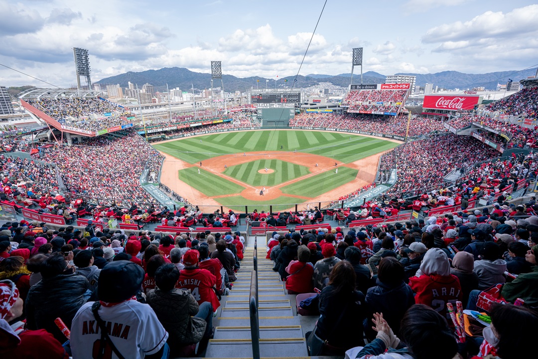 Mazda Stadium is the home stadium of the Japanese professional baseball team, the Hiroshima Toyo Carp. It is a "ballpark" modeled after Major League Baseball stadiums, where you can watch the game from 360 degrees. Feel the excitement of baseball in this open-air stadium!