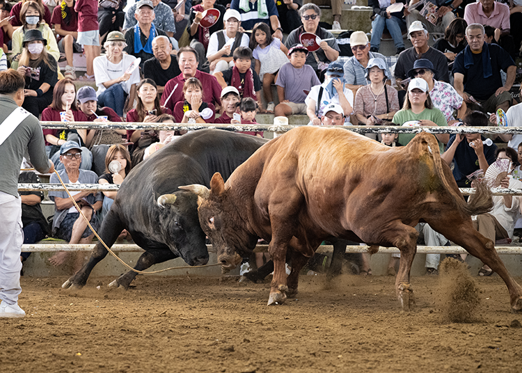 Spring also coincides with Golden Week (last week of April/first week of May), when Tokunoshima hosts several Togyu events. Togyu is the island’s traditional bullfighting culture, distinct from the Spanish version. Here, two bulls face one another in a test of strength, pushing head-to-head until one retreats. Handlers intervene quickly once a clear outcome is reached, minimizing harm.