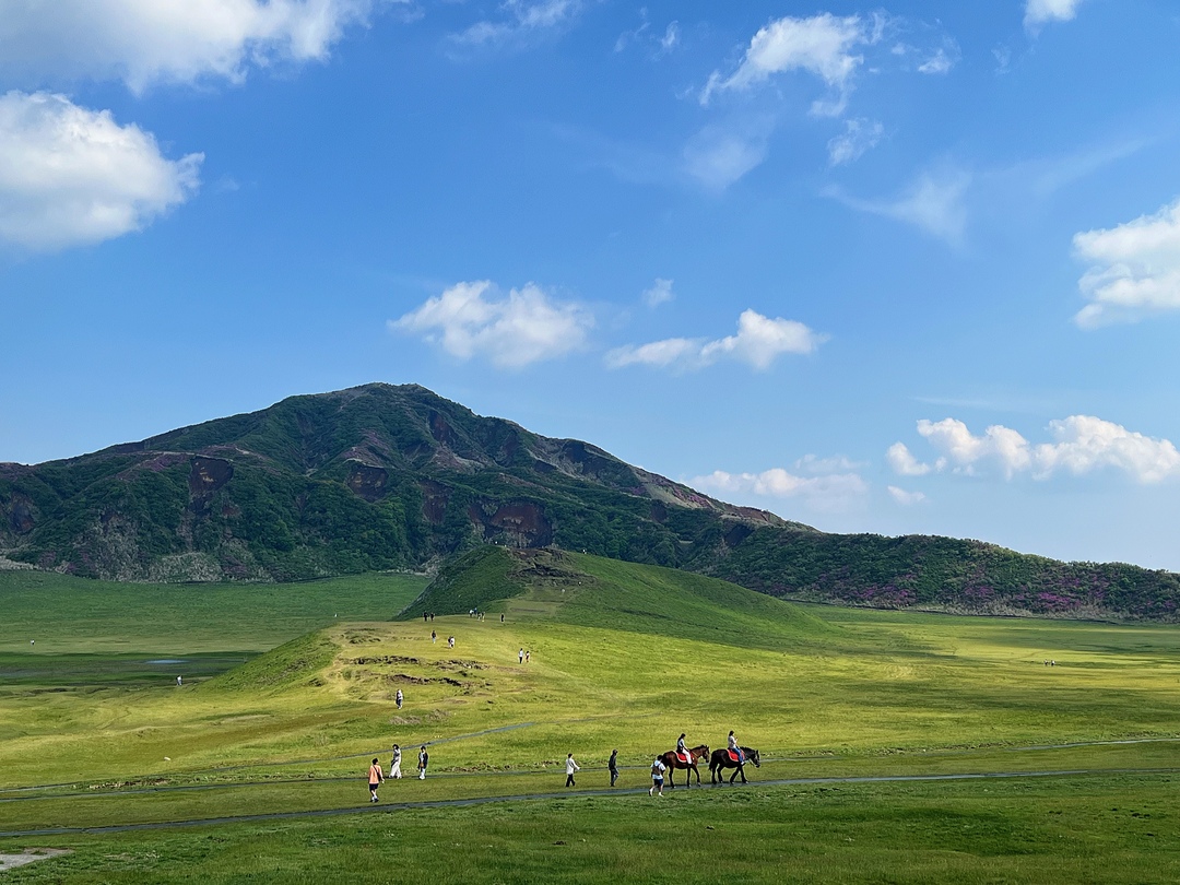 Experience the charm of Japanese shrines, stunning volcanic scenery, majestic grasslands, and cultural experiences on a day trip to Kyushu Aso! Visit Mount Aso, one of Japan's largest active volcanoes, and witness the breathtaking sight of smoke dancing with the earth, and enjoy a panoramic view of the grasslands and crater from a high vantage point. Wander through the stunning Kusasenri Plateau, with its endless green grass and spectacular views of the distant Five Mountains. Ascend Daikanbo, Aso's most famous viewpoint, and take in the entire Aso mountain range and crater; Visit Aso Shrine, a shrine with a 2,000-year history, and experience Kyushu's oldest mountain faith culture. You can also enjoy clear springs and stroll through the old streets on the Suikijunrei Trail, and experience strawberry picking in winter.