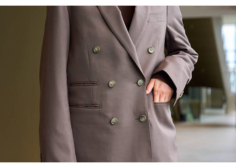 GINZA Global Style particularly recommends their Kaiser Suit. Its name, meaning “emperor” in German, reflects how it naturally falls on the shoulders without feeling heavy. Our model praised it highly after trying it on, saying its fit was in a league of its own compared to other types.