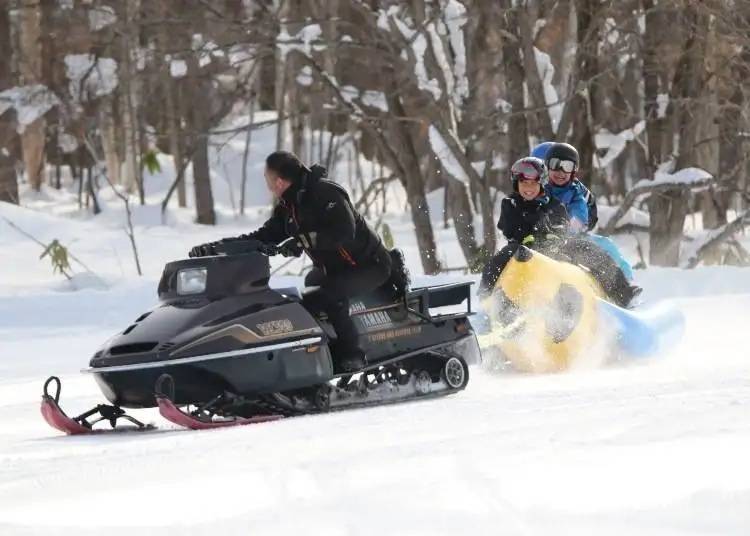 2019〜2020シーズンに導入されたスノーラフティング(バナナボート)は、スキー未経験の小さなお子様や、海外から訪れる観光客にも好評です。牽引するスノーモービルのスピードが上がるごとに、カムイスキーリンクスならではのシルキースノーが雪しぶきとなって舞い上がり、迫力ある体験が楽しめます。