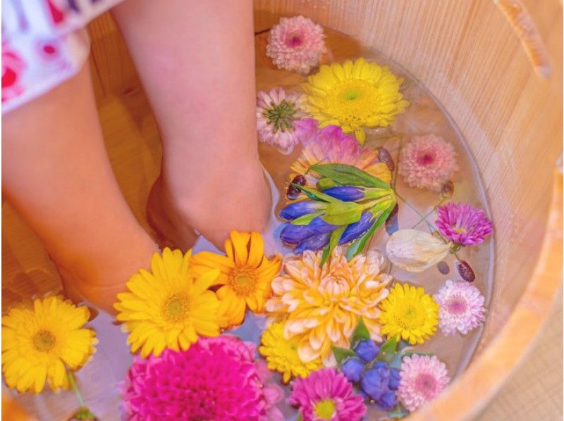 【京都・嵐山】旅の疲れを癒す!五感で楽しむお花の足湯&フットマッサージ(雅・50分コース)