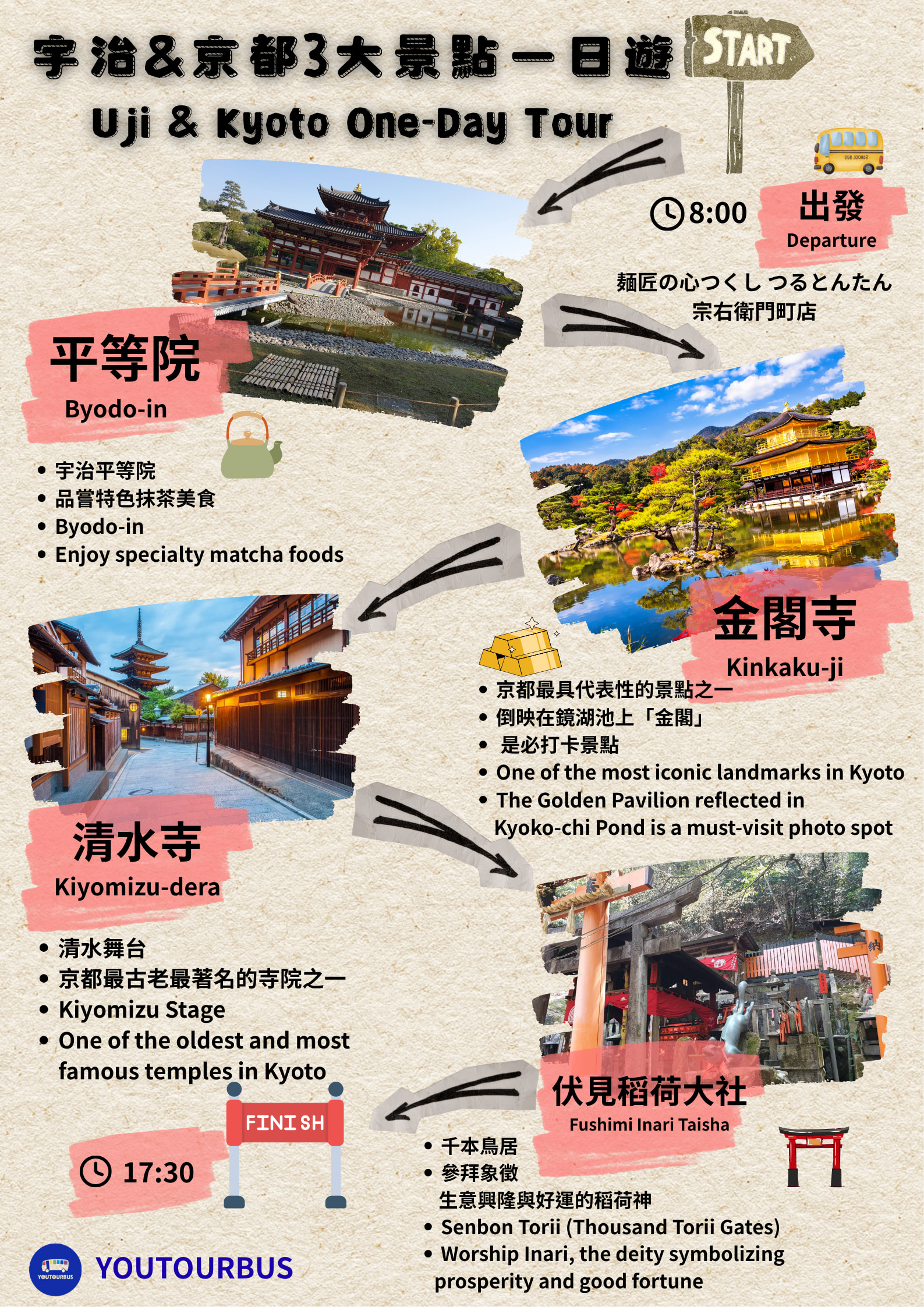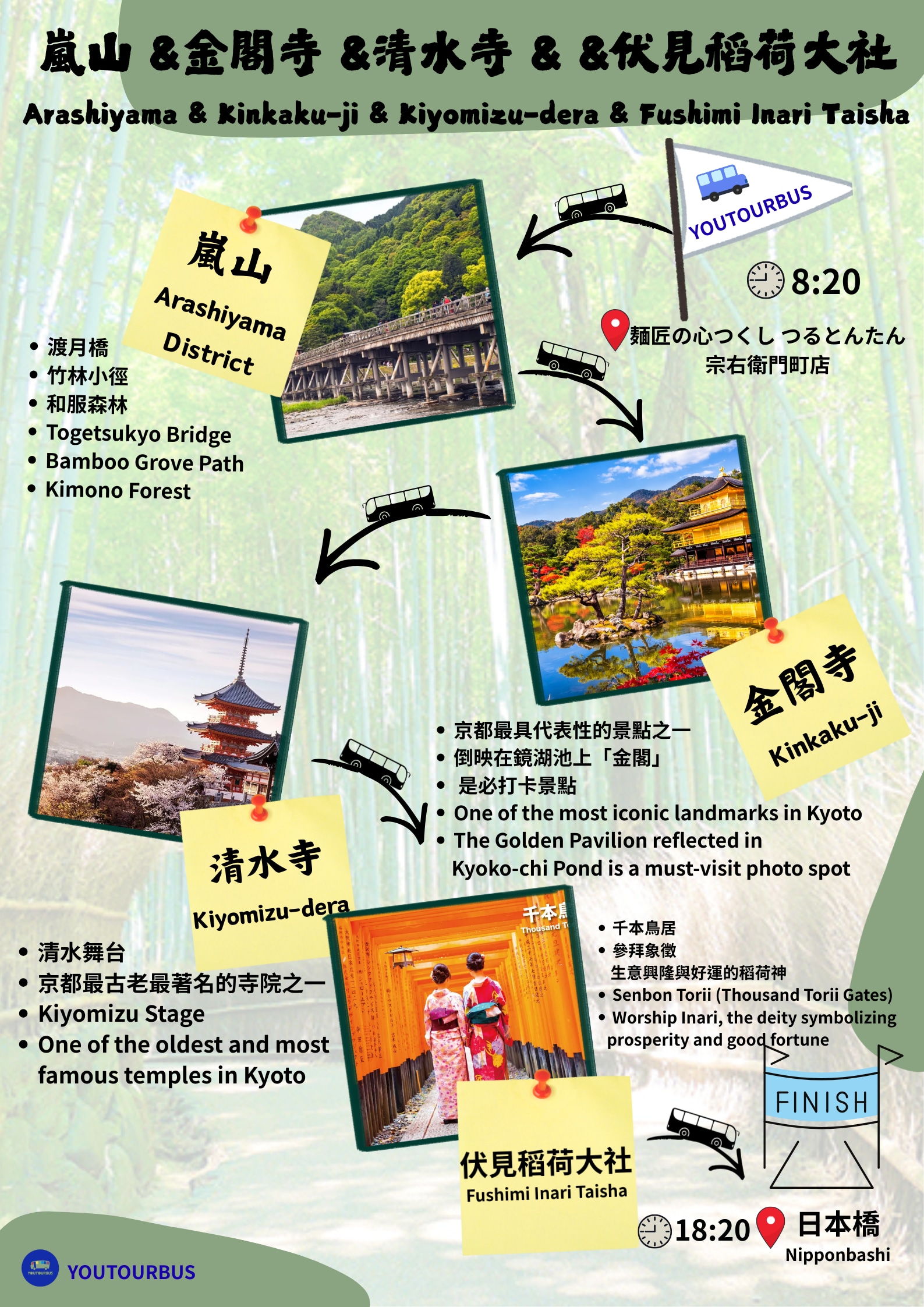 * 一日かけて京都で最も人気のある必見スポット4か所を巡る、ゴールデンルート⛩️