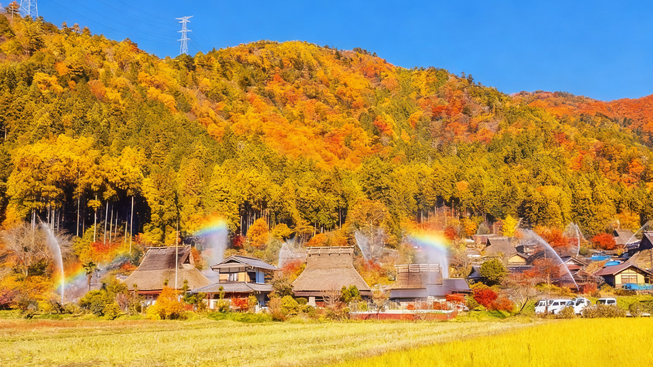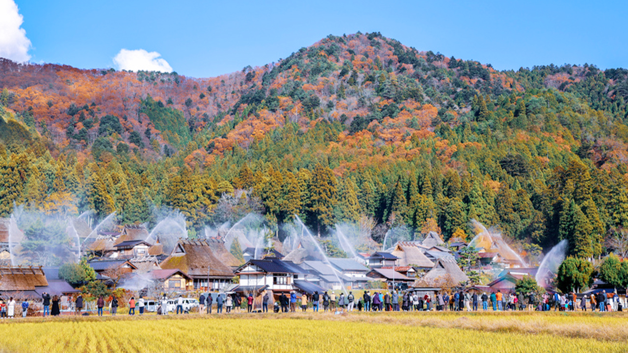 Embark on a limited Kansai Kyoto journey from Osaka, blending culture and nature. Explore three unique destinations in one day, then easily return to Osaka with convenient private transportation for a time-saving and enjoyable experience. **The " thatched roof village" of Miyama Kayabuki Village, Kyoto** Kayabuki no Sato: The main village of Miyama, featuring 40 thatched houses, is the largest thatched roof village in Japan and has been designated as an Important Preservation District for Groups of Traditional Buildings. It encapsulates the essence of traditional Japanese "Gassho-style" architecture, with layered thatched roofs, complemented by golden autumn leaves, resembling a fairytale village. **Miyama Issai Hosui (Miyama Water Release Ceremony)** December 2, 2025 (Requires booking of relevant package) Limited annual autumn event: As villagers simultaneously open the sluice gates, clear water flows through the village's canals, irrigating the fields and creating a stunning view of "thatched roofs reflec
