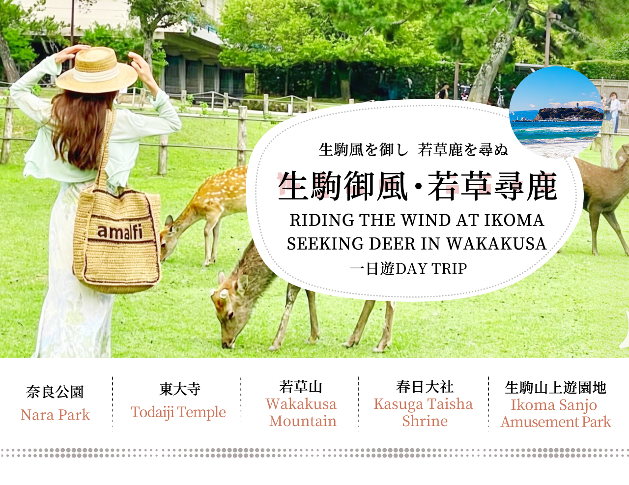 【奈良】 生駒山&奈良満喫|空中サイクル+奈良公園で鹿せんべい体験+東大寺+若草山からの眺望一日観光|大阪発(生駒山上遊園地またはひらかたパーク選択可能)