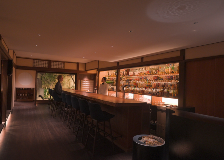 近鉄奈良駅からほど近い場所にある『Bar Savant』は、「和の精神とバーの融合」をコンセプトに掲げるオーセンティックバー。築120余年の奈良町家を改装した魅力あふれるお店です。茶の湯の精神が取り入れられており、店の扉を開くと茶室のにじり口のようなアプローチがあります。ここが日常の喧騒から、しっとりとした非日常の空間へとゲストをいざなう境界線です。