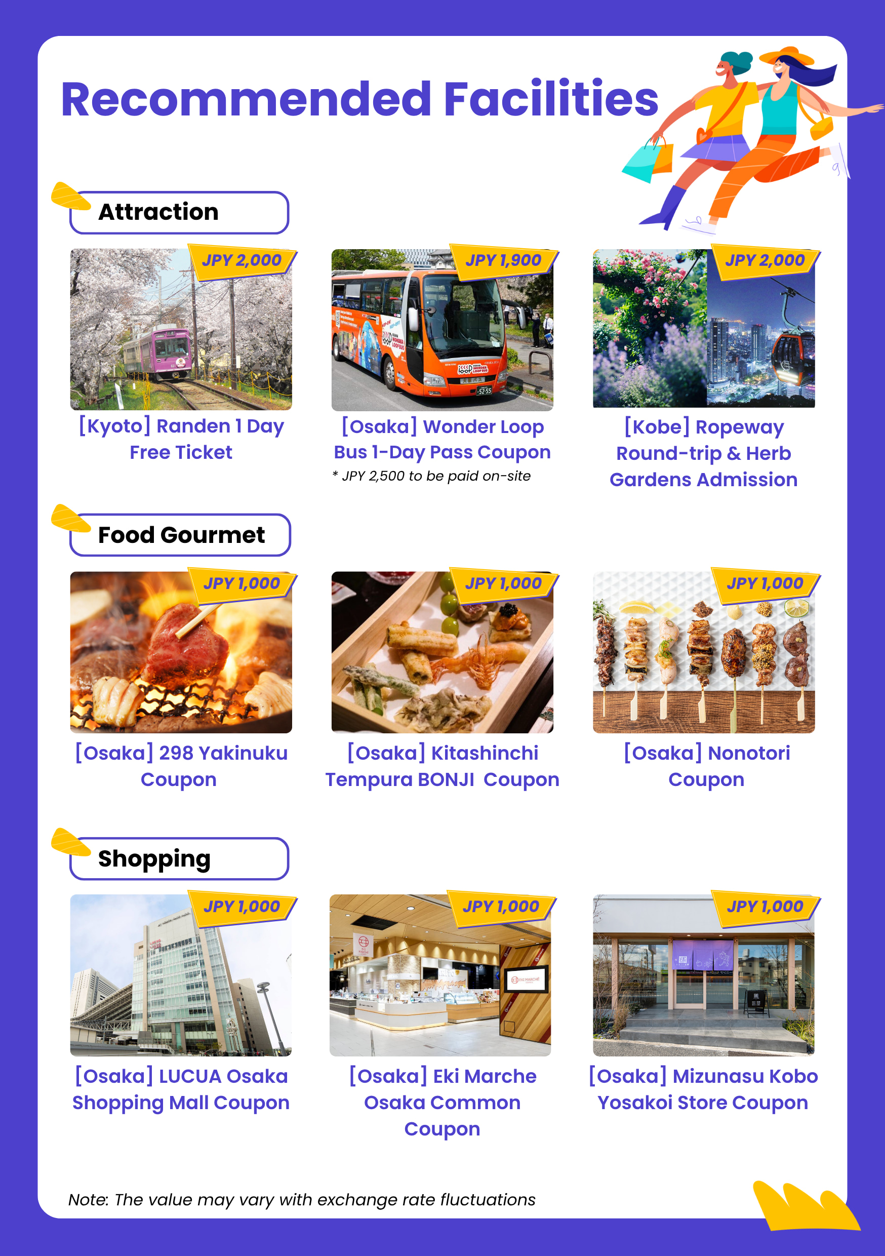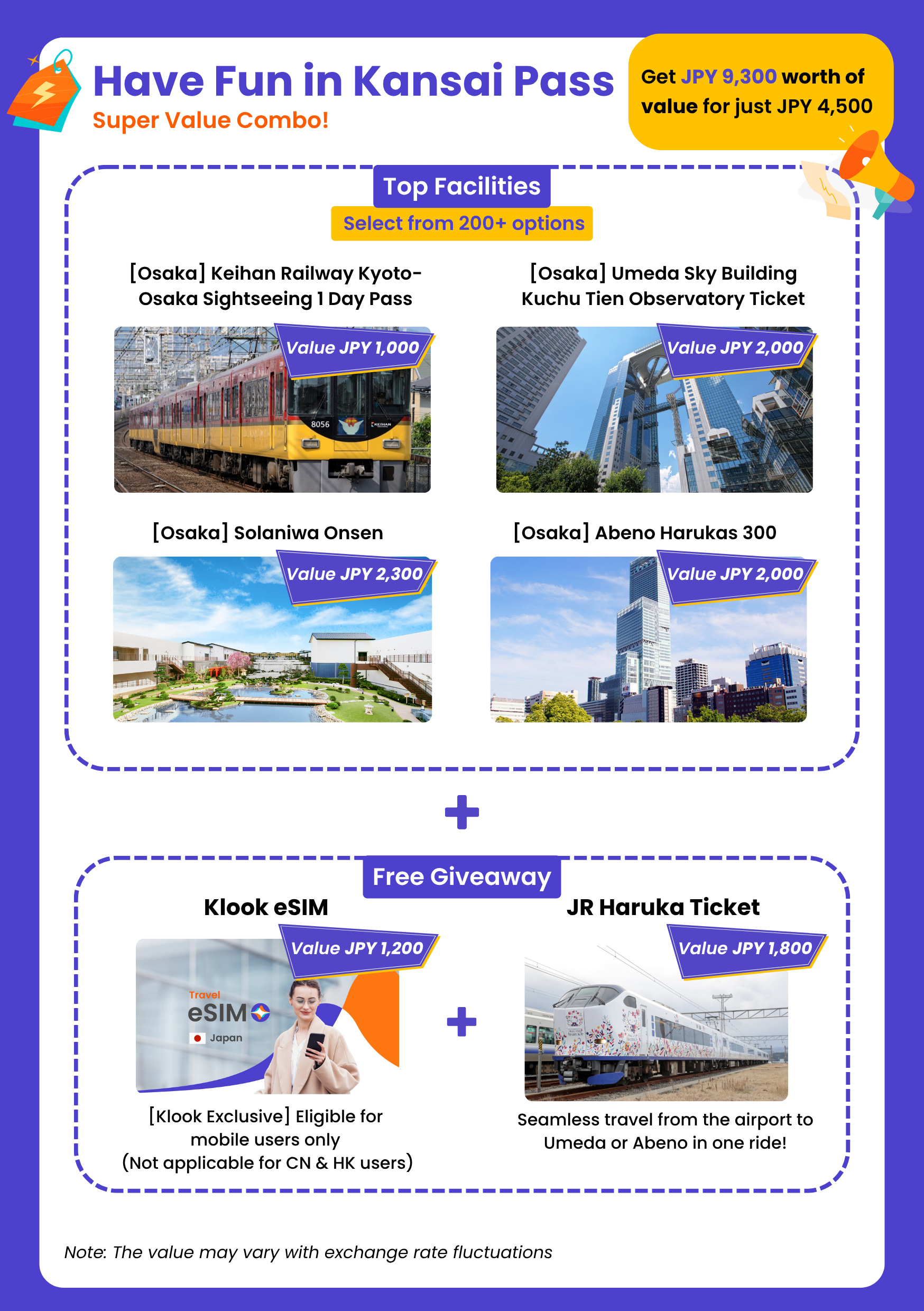 - * **200以上の観光スポットへのアクセス**:梅田スカイビル、空庭温泉、あべのハルカス300など
