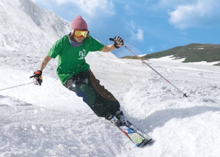 日本には、新潟県の「かぐらスキー場」や長野県の「野沢温泉スキー場」のように、夏場でもスキーを楽しめるスポットがいくつかあります。その中でも、山形県にある「月山スキー場」は、春・夏スキーの代表的存在で、毎年4月から7月上旬までがシーズンとなっています。