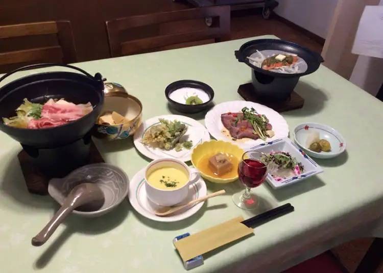 山形牛や地野菜といった、山形県ならではの食材を使ったメニューを用意。朝食・夕食の御膳だけでなく、お昼のお弁当も。山形県ならではの地ビールや地ワインといったドリンクも充実しています。