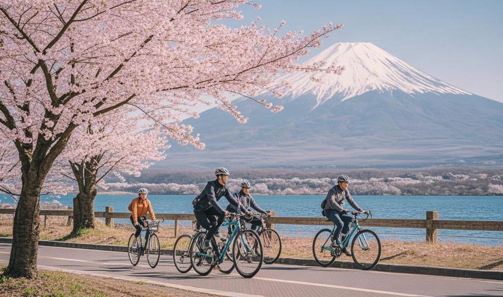 【静岡】 富士山サイクリング2日間ツアー|河口湖パノラマロープウェイ&抹茶体験+大石公園+忍野八海+平野の浜+山中湖サイクリング/遊覧船+SNS映えスポット|温泉ホテル1泊付き