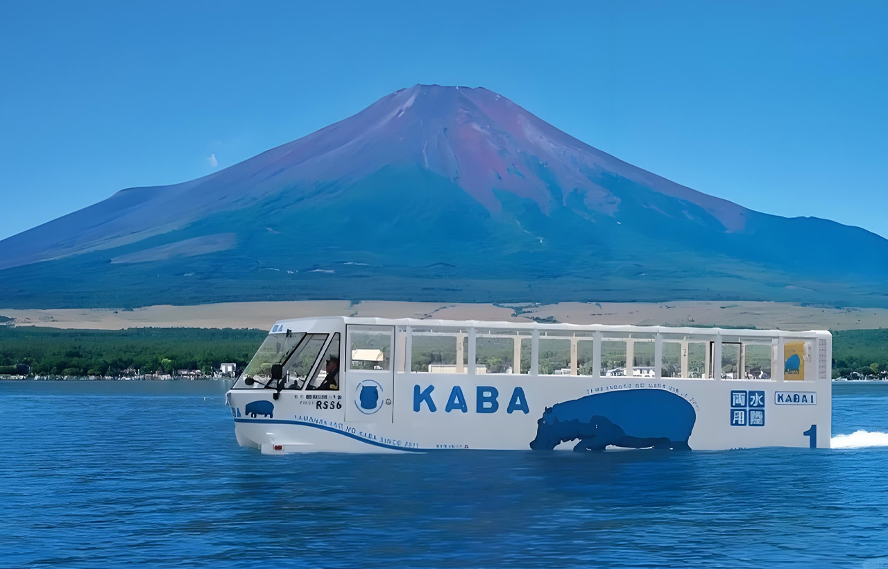 水陸両方の視点から富士山を鑑賞 | 山中湖KABA 水陸両用バス / 白鳥号遊覧船いずれか選択+平野の浜 + 忍野八海 + 河口湖大石公園 | ファミリーにおすすめ&東京出発
