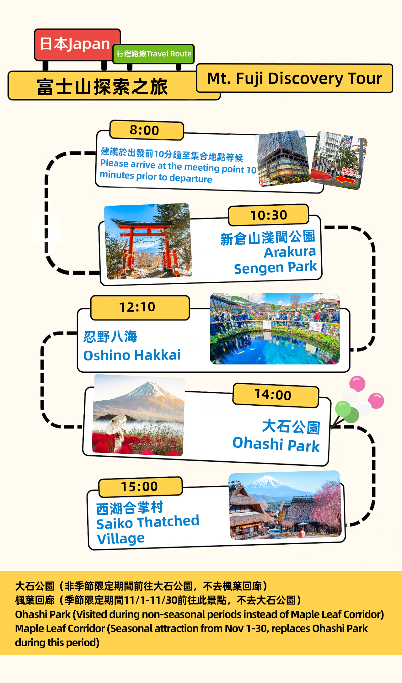 - 事前のお知らせ:ご出発の前日、18:00~21:00頃に、詳細なガイドと車両情報をメールでお送りしますので、必ずご確認ください。 -