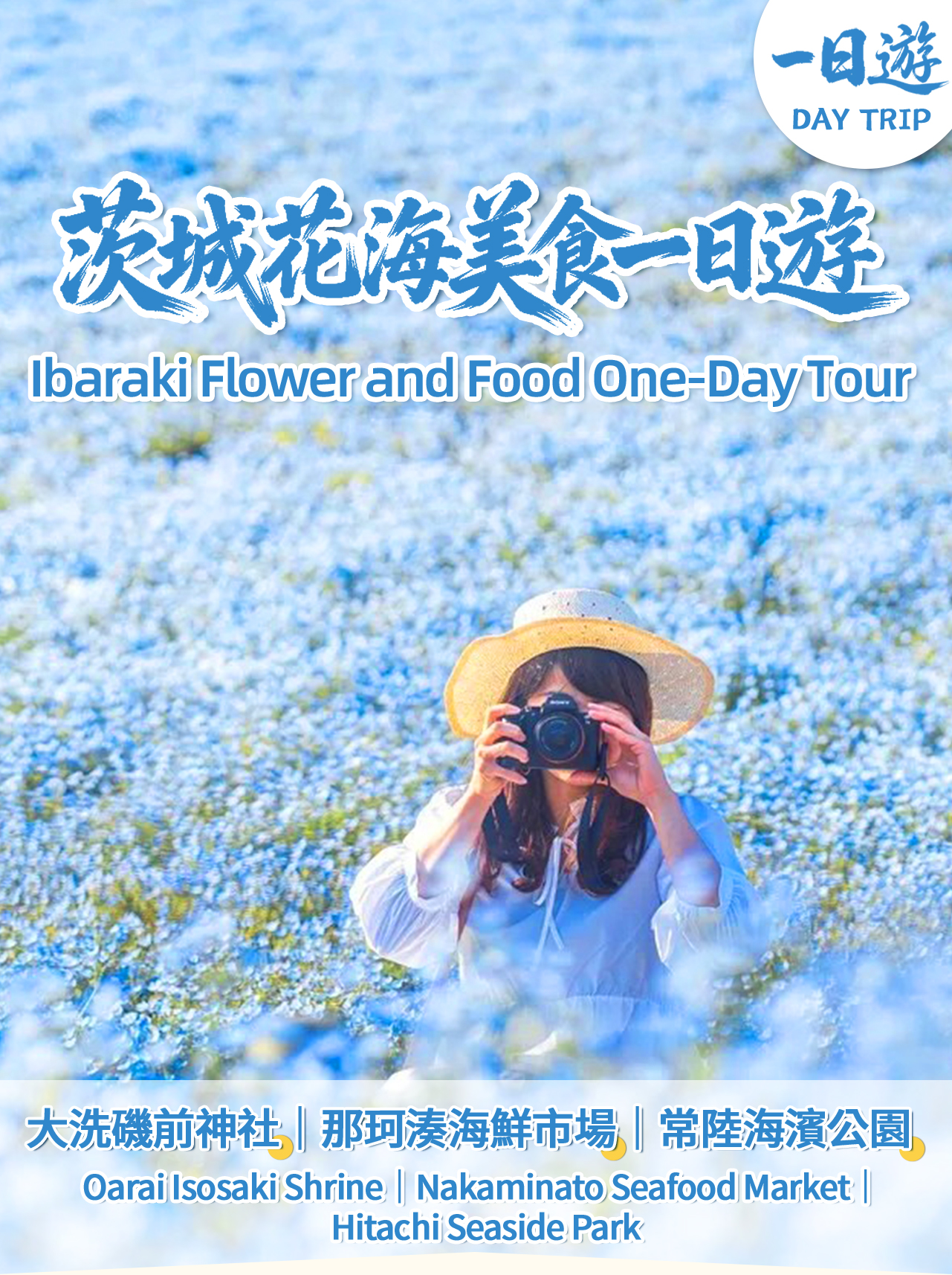 - * ひたち海浜公園の夢のような蝶の海(4月~5月)、530万本の青い花と青い空と海が調和し、まるでおとぎ話の世界にいるような気分