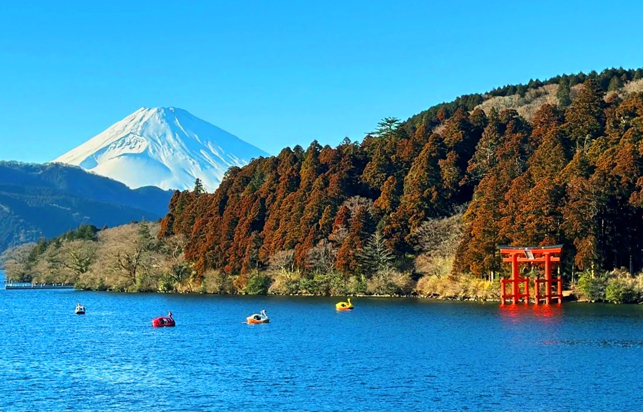 * 神聖な鳥居から火山の秘境、湖上遊覧船から空中ロープウェイまで、大涌谷で「黒たまご」を味わい、富士山と白鳥に出会い、日本の古き良き村落と湧水の秘境を探訪。 本行程では、海、陸、空と様々な角度から富士山と箱根の多様な魅力をご体験いただけます! * **箱根神社+芦ノ湖 海上鳥居** 箱根神社は757年に創建され、「箱根の鎮守、航海安全の祈願」で知られています。芦ノ湖の湖畔に佇む「海上鳥居」は、日本の象徴的な景観の一つ。朱色の鳥居が湖水に半分浸かり、背景には富士山(天候の良い日には見えます)と湖の景色が広がり、どこを切り取っても“日本の雑誌”のような美しい写真が撮れます。 * **箱根海賊船** 箱根海賊船(有料)に乗って芦ノ湖を遊覧し、湖岸の美しい景色をご堪能ください。 海賊船は、レトロなヨーロッパ風の遊覧船が特徴で、船体は黒、赤、青の3色に塗られ、甲板には本物そっくりの大砲が備え付けられています。乗船した瞬間からまるで“湖上の冒険”が始まるかのようです! * **箱根空中ロープウェイ**(ロープウェイ乗車券付き) ロープウェイは山谷を縫うように進み、標高が上がるにつれて視界が開けていきます。眼下には緑豊かな森林や蛇行する渓流が広がり、大涌谷に近づくと火山噴気口から立ち上る白い煙が見え、“火山の上に浮かんでいる”かのような、感動的で癒される体験ができます。 * **大涌谷** 大涌谷は、箱根火山の活動の“生きた化石”です。火山噴気(硫黄を含む)によって岩が赤褐色に染まり、一年中白い霧が立ち込め、“地獄谷”のような神秘的な雰囲気を醸し出しています。火山の温泉水で茹でた名物の「黒たまご」も味わえます。 * **山中湖 白鳥の浜** 「白鳥の浜」は、白鳥がよく飛来することから名付けられました。ここは「富士山+湖+白鳥」を撮影する絶好のスポットで、湖面が穏やかな時には富士山の輪郭が映し出され、“富士山の鏡”と呼ばれています。 * **忍野八海** 忍野八海は“八つの湧水”に由来します。湧水は富士山の雪解け水が地下に浸透したもので、透明度が高く、“日本の名水百選”にも選ばれました。村落には伝統的な日本家屋が残っており、石畳の道、木造の民家、庭の緑が美しい景観を作り出しています。