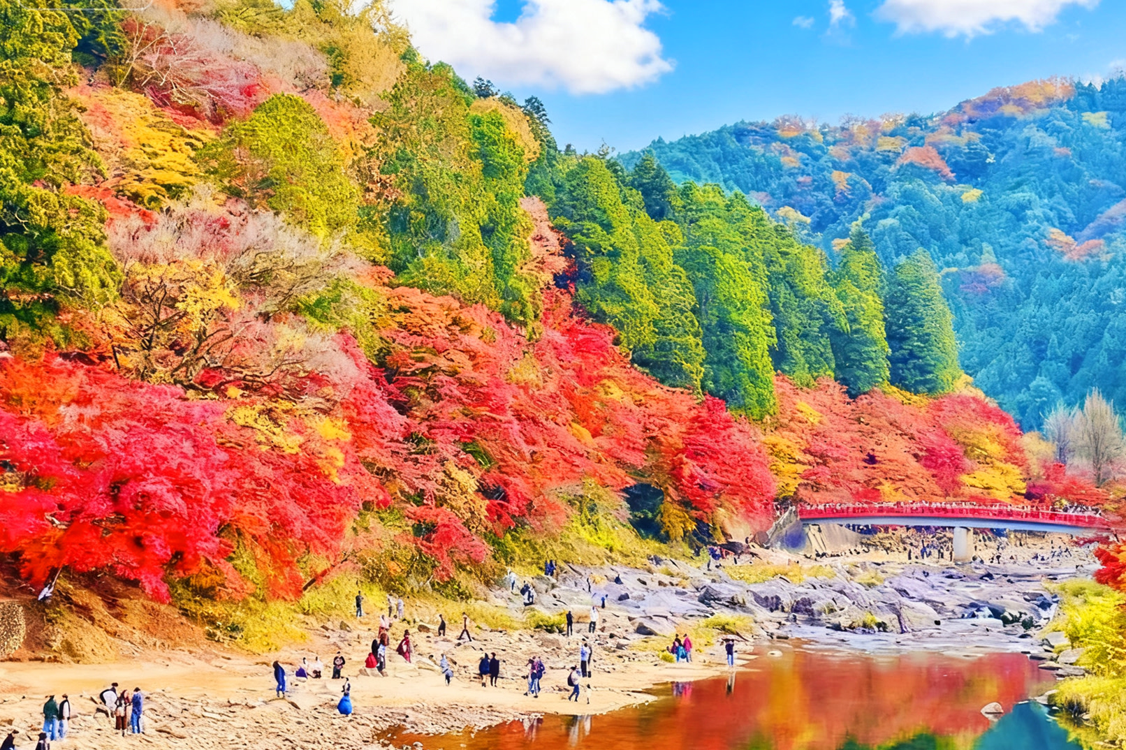 日本の秋を楽しむ、香嵐渓紅葉ライトアップと小原四季桜