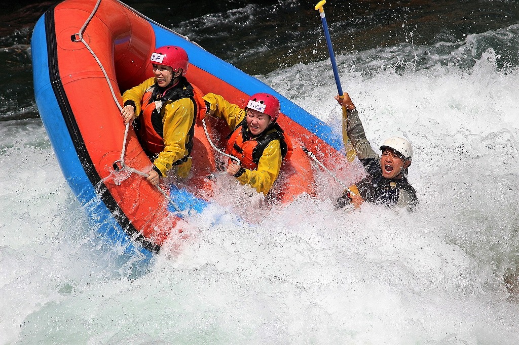 日本一の激流四国の吉野川でラフティングです。 渓谷に流れる急流や瀬はとても魅力的です。あなたの視界では収まらない景観も楽しんでください。 コースは午前と午後の2つを用意しておりますので、あなたの都合に合わせて選べます。 ガイドと合流し、ウェットスーツ、ヘルメット、ライフジャケットを装着して冒険が始まります。安全に関する説明を受けた後、グループでラフトに乗り込み、吉野川へ出発します。 12のスリル満点の急流をチームメンバーと協力しながら攻略しましょう。急流の合間には、大歩危・小歩危の絶景を眺めながら、穏やかなひとときをお過ごしください。 途中、ラフト上でゲームやアクティビティを楽しんだり、岩から川へ飛び込んだりすることもできます。 冒険の後は、ベースに戻り、乾いた服に着替えて、エキサイティングな体験を振り返りましょう。 ラフティングが怖い方はAM半日コースがお薦めです。