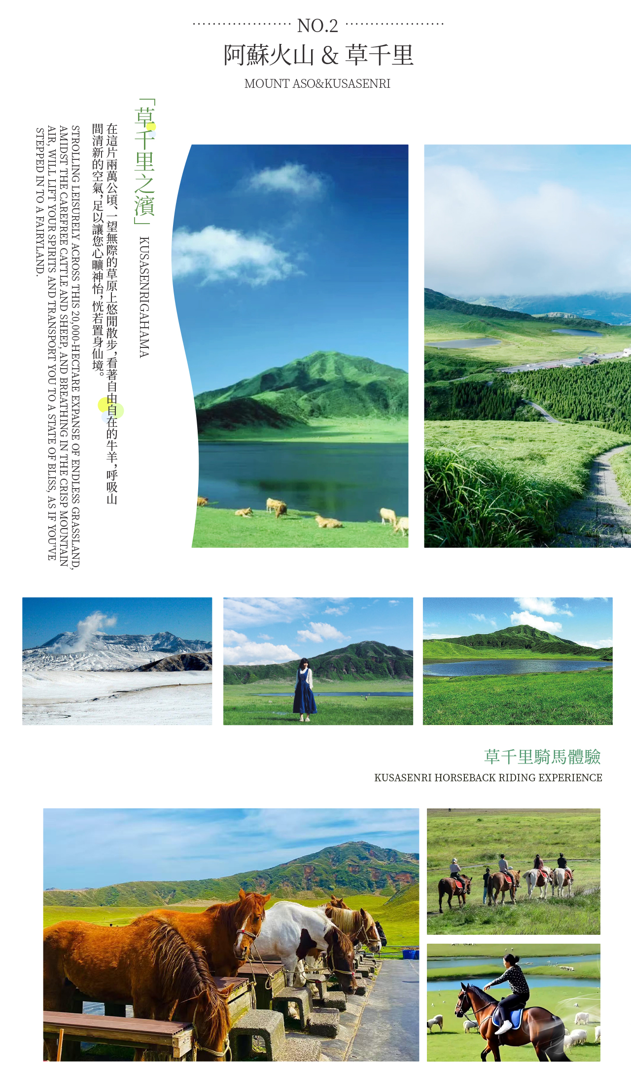- * 草千里散歩:広大な草原が緑の波のようで、映画のような写真撮影シーンをアンロック