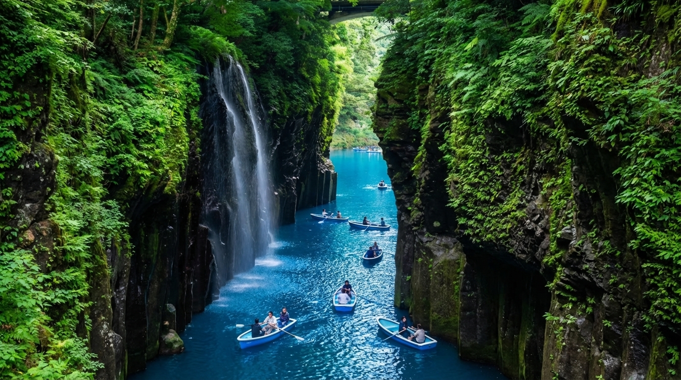 福岡博多駅から集合し、九州の三大自然ランドマークを1日で巡ります! 日本で火山を見たり、乗馬をしたり、滝の峡谷をボートで横断したりすることを考えたことがありますか?この日帰りツアーはすべて手配済みです! * **阿蘇火山中岳火口**(約30分滞在) ここは日本で最も活発な火山の一つです!噴煙を上げる火口を間近で見て、大地の内部のエネルギーと迫力を感じてください。 天候が許せば、神秘的な火口湖、まるで異星のような幻想的な緑青色を見ることもできます。 * 写真撮影のヒント:遠くの高い場所から構図を決め、火山から立ち上る蒸気の瞬間を捉えましょう。迫力満点です。 * 知識:阿蘇火山は世界最大級のカルデラの一つで、『進撃の巨人』にも登場しました! ⚠️**阿蘇火山が一時的に閉鎖された場合、当日の行程により高千穂神社または阿蘇火山広場からの遠望に変更されます。当日のガイドが手配しますので、ご了承ください**。 * **草千里**(約60分滞在) 阿蘇火山の麓に広がる、見渡す限りの緑の草原。牧場では牛や馬がのんびりと草を食み、そよ風が草の波を揺らす様子は、多くの写真家にとって「自然のフィルター現場」です。 のんびり散歩したり、乗馬体験(自費)をしたり、草の上に座って静かにぼーっとしたり、ここは本当に癒されます。 * 写真撮影のヒント:軽いスカート、麦わら帽子、横顔で遠くを見つめるポーズで、すぐに旅行写真の傑作が撮れます! * **高千穂峡谷**(遊覧船体験オプションあり、約60分滞在) ここは日本で最も神秘的な峡谷の一つで、天照大神が隠棲したとされる伝説の場所でもあります。 手漕ぎボートに乗って狭い峡谷を横断します。両側には垂直な玄武岩の絶壁がそびえ立ち、頭上からは高千穂の滝が流れ落ち、夢のように幻想的です! 峡谷の水面は鏡のようで、ボートの影と水面の反射が交錯し、息をのむほど美しいです。多くの日本人にとって一生に一度は訪れたい「パワースポット」です。 * 写真撮影のヒント:事前に防水バッグを用意し、ボートに乗る人が少ない時に正面から記念写真を撮るのが一番きれいです! * これは自然が好きなあなたにぴったりの日帰り小旅行です: 観光地を急がず、駆け足で見るのではなく、1日かけて九州の自然の原始的な美しさと優しさを深く体験します。 火山の熱気から峡谷の涼しさまで、どの場所も立ち止まって見る価値があります。 **本ツアーには