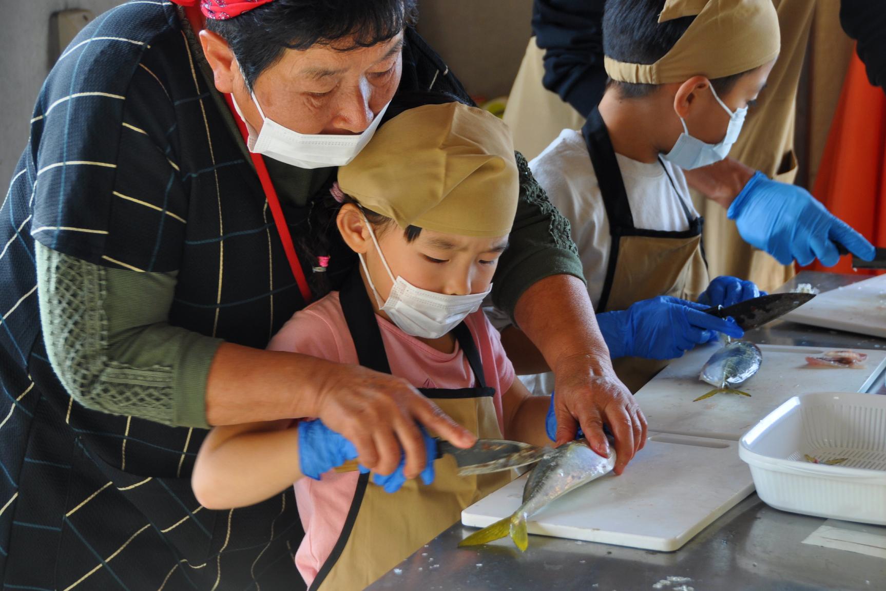 - 青島では美しいビーチが目の前にある調理場で、島のお母さんと一緒にアジフライを調理し、ビーチを眺めながらランチを楽しみます。