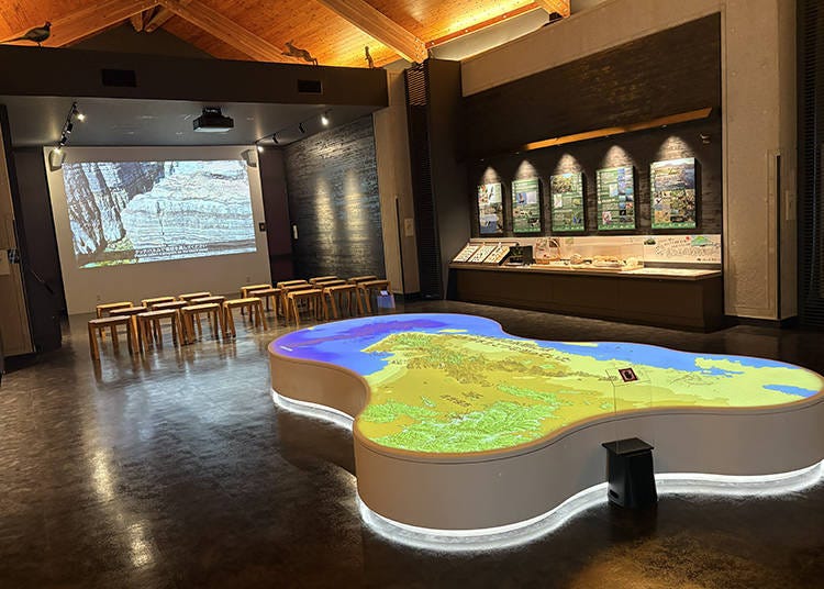 五島市に着いてまず感じることは、なぜこの島々ができたのかという疑問です。五島市より西にはただ海が広がるだけで、中国大陸との間に主な島は存在しません。どうして日本の西の果てに五島列島ができたのか?その成り立ちの疑問に答えてくれるのが、五島福江空港から15分ほど南下した海岸にある鐙瀬(あぶんぜ)ビジターセンターです。実は五島市はその全域が「西海国立公園」の中にあり、2022年1月には 「五島列島(下五島エリア)ジオパーク」として認定されました。鐙瀬ビジターセンターは、五島列島の誕生や自然、歴史文化を楽しく学べるジオパークと西海国立公園の拠点施設で、特に五島列島の成り立ちだけではなく、日本の成り立ちまでわかりやすく紹介する大画面の映像は英語対応もしており、五島市を訪れたら最初に鑑賞してもらいたい施設です。また飲食の持ち込みやフリーWi-Fiが完備された休憩所があり、旅行の拠点として利用するにもおすすめな施設です。
