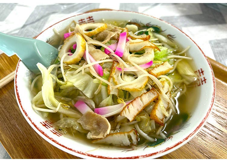 資料館を回り知識を蓄えたところで、そろそろお腹が空いてくる時間です。昼食は、ご当地グルメ「五島うどん」がおすすめです。その歴史は非常に古く、8世紀から9世紀、日本と中国(唐)を行き来した遣唐使船によって五島市に伝わったと言われています。遣唐使の日本への帰国船は中国の浙江省(せっこうしょう)沿岸から出航し、五島市福江島に寄港しました。その際に、浙江省に伝わる「索麺(そうめん)」の製法が五島市に伝えられたと考えられています。五島うどんは、麺を延ばす際に椿油を塗る「手延べ製法」が特徴で、これは中国の索麺の製法と非常に酷似しています。椿油を塗って伸ばしていくことで独特の風味と、麺のくっつきを防ぎ、表面が滑らかになることで、食べた時につるつるとした食感が生まれます。そしてねじりながら何度も伸ばしていく手延べ製法によって、細い麺にもかかわらず、しっかりとした強いコシと弾力がある五島うどんができ上がります。地元で採れたトビウオ(あご)を使った出汁も特徴で、上品でうま味とコクのあるアゴ出汁で食べる五島うどんは絶品です。五島福江空港からほど近い鬼岳(おにだけ)の展望台近くにある「鬼岳四季の里」や島内の多くの飲食店で食べることができる五島列島を代表する名物です。
