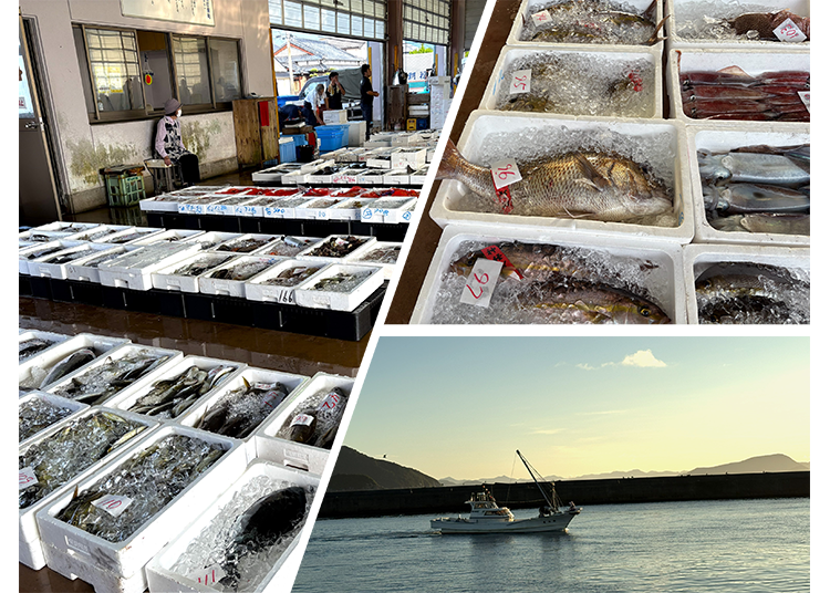 半泊集落を散策していると、そろそろ夕暮れに近づいてくるでしょう。五島市内の多くの教会が16時ころには閉館してしまいます。ホテルに戻りチェックインや休憩をしたら、夕食は五島市の海の幸を楽しんでみましょう。五島市は、身が引き締まって大型で新鮮な魚が採れる日本有数の産地です。今より海水面が低かった氷河期には、五島列島は日本の本土と陸続きでした。1万年ほど前に氷河期が終わり、海水面が上昇したことで低い土地に海水が流れ込み、大小152の島々からなる五島列島が形成されていきます。その結果、かつての陸地だった場所は、水深が約50m〜200mと緩やかに傾斜しており、海水が入り込んでできた複雑な入り江(リアス式海岸)や大小の島々が、魚たちの絶好の隠れ家となり、非常に生息しやすい環境を提供しています。さらに、南から対馬海流が流れ込みます。温かく流れの早いこの暖流は、更に多くの魚やその餌となるプランクトンを島々へ運んできます。魚の隠れ家が多い地形にこの暖流が流れ込むことで、豊富な餌が集まり、そして速い流れの中で餌を食べることで、魚は身が引き締まり、大きく育つのが特徴です。このように、五島列島は複雑な地形と暖流の影響が理想的に重なり合うことで、極めて豊かな最高の漁場となっているのです。そして早朝に水揚げされたばかりの新鮮な魚は、漁港に隣接する市場ですぐにセリにかけられ、その日のうちに五島市内の料理店に届けられます。五島市を訪れたなら、まずは鮮度抜群の魚を刺身や寿司で味わってみてください。特に、鮮度が命と言われるキビナゴは、ぜひお刺身で楽しんでいただきたい逸品です。ただし、毎年6月と7月はキビナゴの禁漁時期のため、水揚げがありませんのでご注意ください。