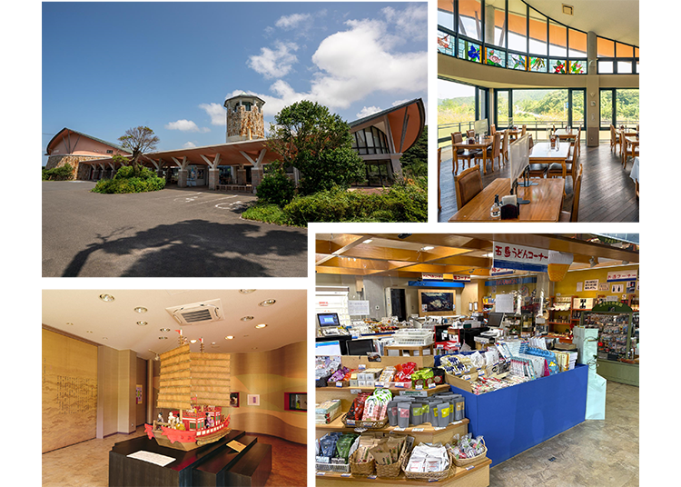 魚津ヶ﨑公園を更に西に進むと、古くは日本から中国(唐)へ渡る国内最後の寄港地として知られる三井楽(みいらく)地区に到着します。そこにある「道の駅 遣唐使ふるさと館」は、遣唐使船の歴史を学べる施設で、五島牛、五島うどんなど、食事も楽しめる施設で、ランチやお土産の購入に立ち寄るのもおすすめです。