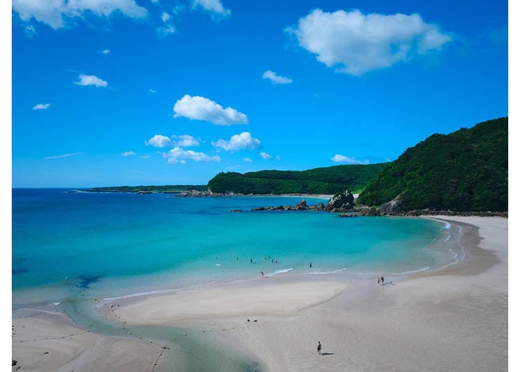 五島市には、息をのむほど美しいビーチが点在しています。手付かずの自然が残る場所や、誰もが安心して楽しめる遠浅のビーチ、夕陽が美しく見える場所など、島中で白い砂浜とコバルトブルーの海が出迎えてくれます。今回は、五島市の中でも特に訪れてほしい、個性豊かなビーチを3つご紹介します。
