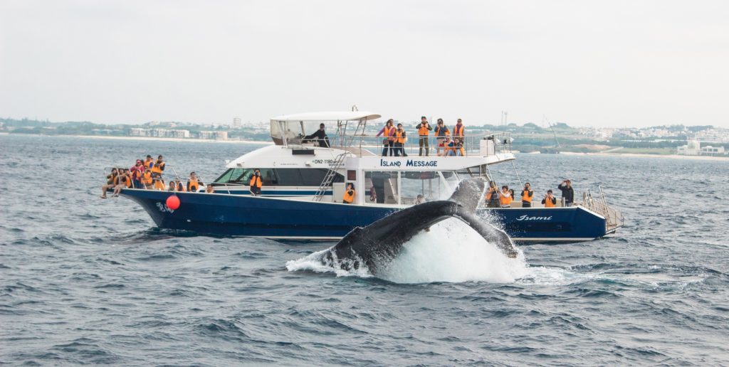冬の沖縄だけでザトウクジラを見に行こう!当社のボートは県内最大級で、アメリカンビレッジに近い北谷の浜川漁港から出航します。 ホエールウォッチングツアーで観察されるザトウクジラは、体長13〜15メートル、体重約30トンです。 12月頃から、彼らは交尾、出産、子育てのために、暖かく穏やかな沖縄の海域に南下してきます。 ツアーでは、母子のクジラが穏やかに泳ぐ姿や、時には巨大な体が水面から飛び出すダイナミックな行動を楽しむことができます。常に壮大なアクションが保証されているわけではありませんが、自然の中で生きるこれらの野生動物の雄大な存在は、感動的で忘れられない体験となることでしょう。