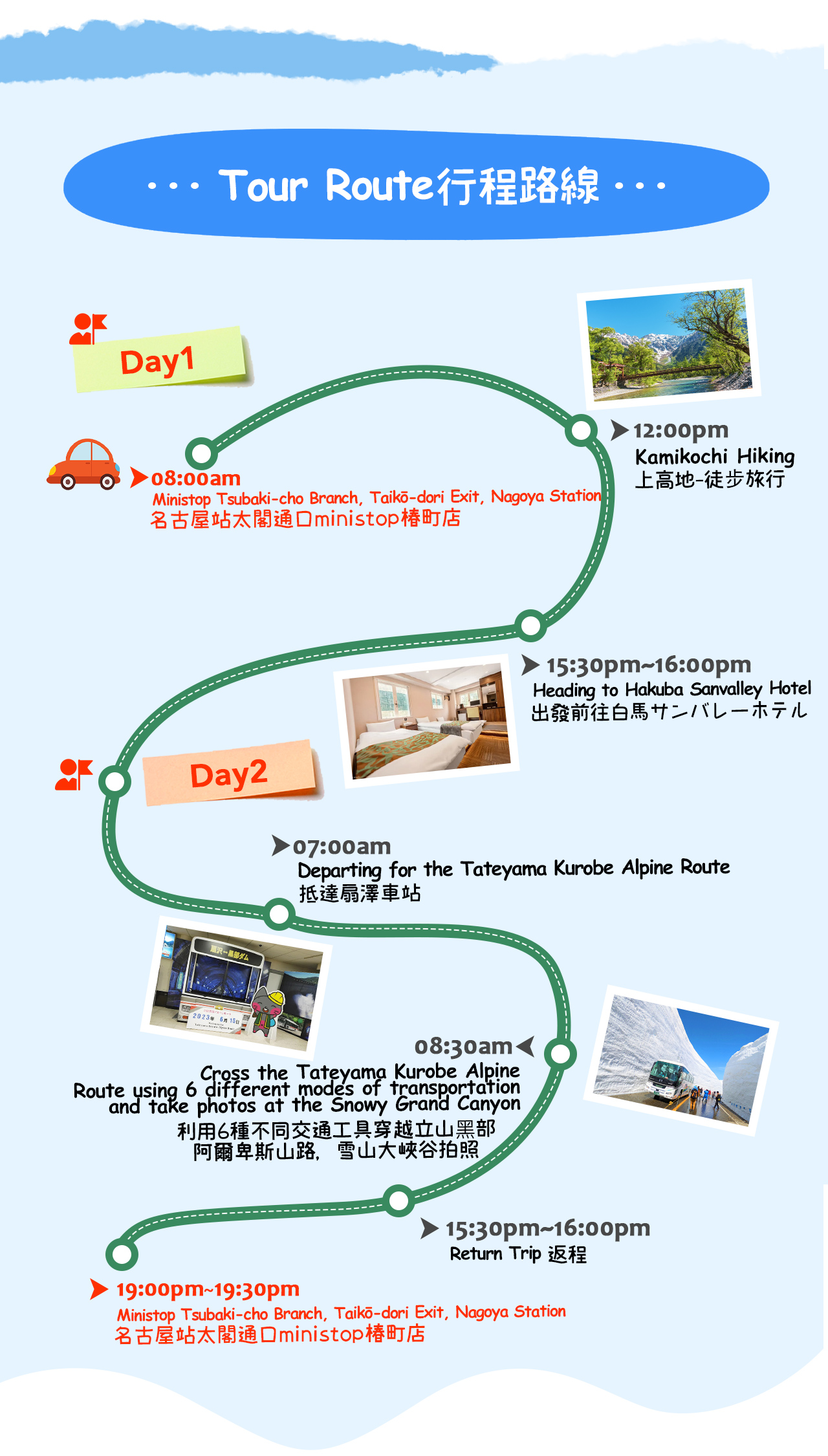# 日本のアルプスを探検する絶景の秘境、視覚と心の饗宴があなたを待っています。 * 上高地からの旅程は、「日本の九寨溝」と称されています。なだらかで歩きやすい遊歩道は、大正池、田代池、河童橋などの定番スポットを気軽に散策できます。梓川沿いを歩き、穂高連峰と焼岳の連なる山々を鑑賞し、湖面に映る山影は、まるで流れる山水画の中にいるようです。健脚な方は、明神橋と明神池まで足を伸ばし、より静かな秘境の美しさを感じ、山林間の静けさと涼しさを満喫できます。 * その後、白馬サンバレーホテルへ。夕食は洗練された会席料理、朝食は豊富な和食と洋食を提供し、これからの高山旅行にエネルギーを補給します。 * 2日目は、立山黒部アルペンルートを通り抜け、雪の大谷の約20メートルの迫力ある雪壁を体験し、厚い雪原を散策すると、まるで北国の仙境にいるようです。沿道には、黒部ダム、黒部平、大観峰、室堂などの観光スポットがあり、どの旅程でも息をのむような高山の美しい景色を撮影できます。運が良ければ、「神の使者」と呼ばれる雷鳥に出会え、自然とゼロ距離で触れ合うことができます。 ## * 2日間の旅程は、静かな山間の秘境と、壮大な雪山の絶景があり、日本のアルプスの多様な魅力を一度に体験できます。これは単なる旅行ではなく、自然と触れ合う癒やしの体験です。