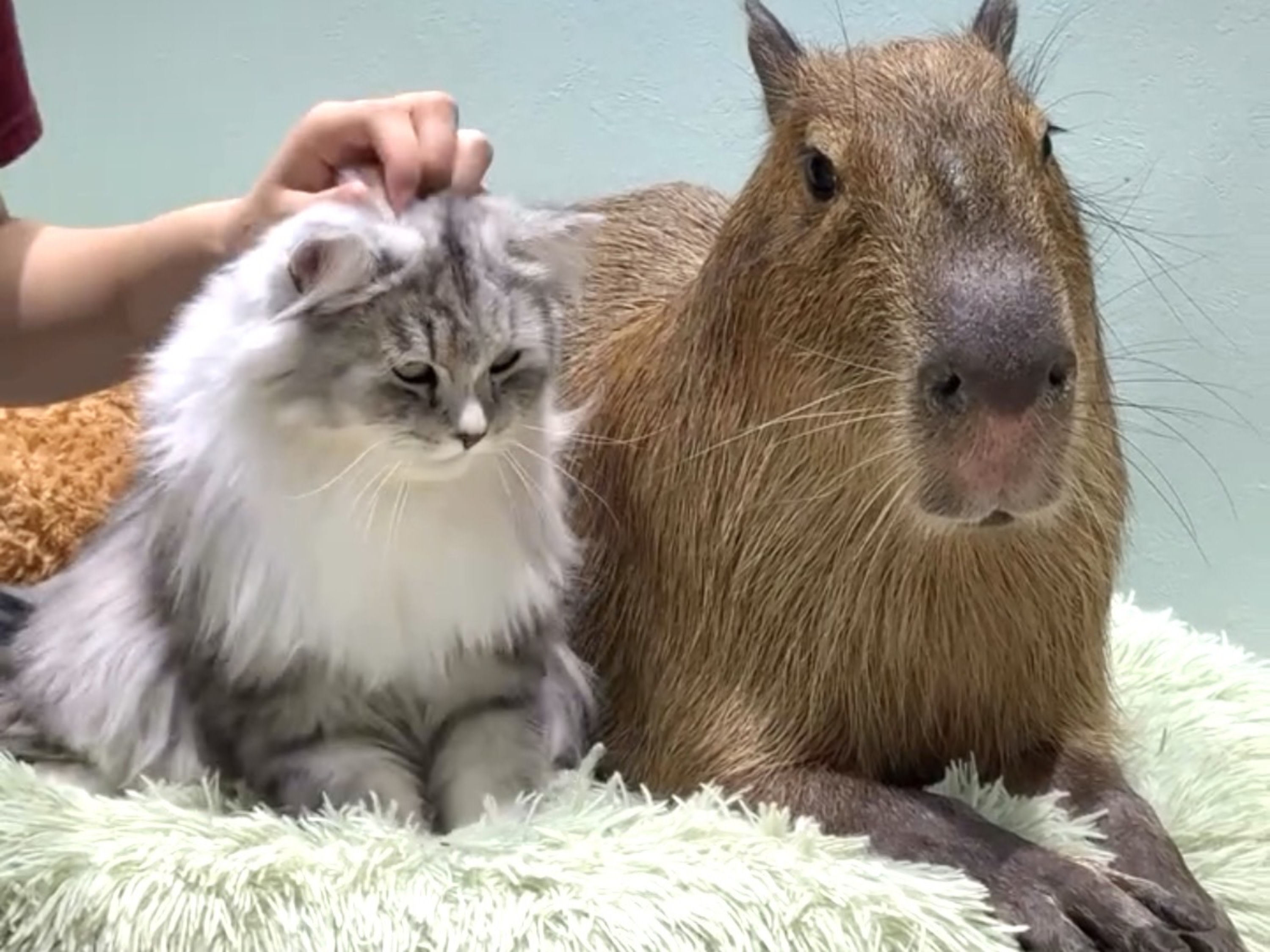カピバラと猫とのふれあい(カピネコカフェ吉祥寺)