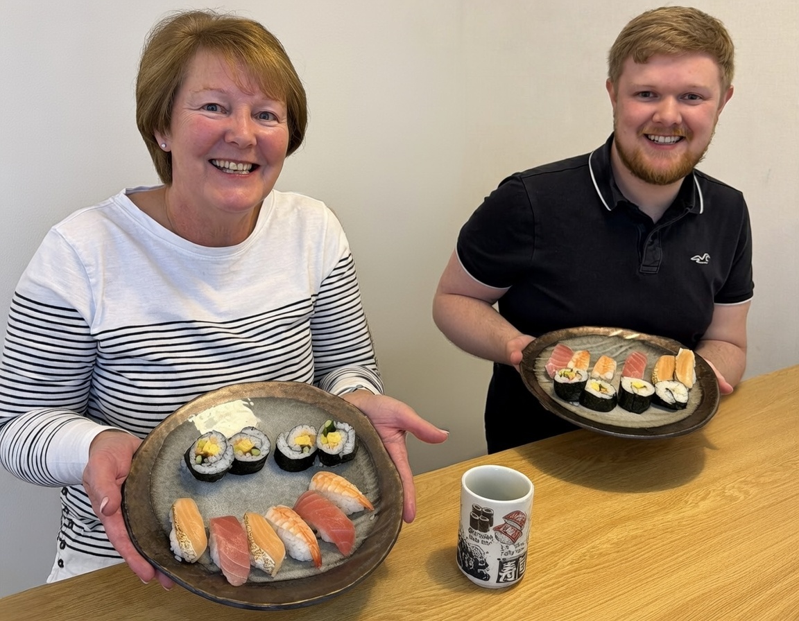 - * モダンな味も試そう—炙りサーモンマヨ軍艦を「わっしょい!」の掛け声とともに
