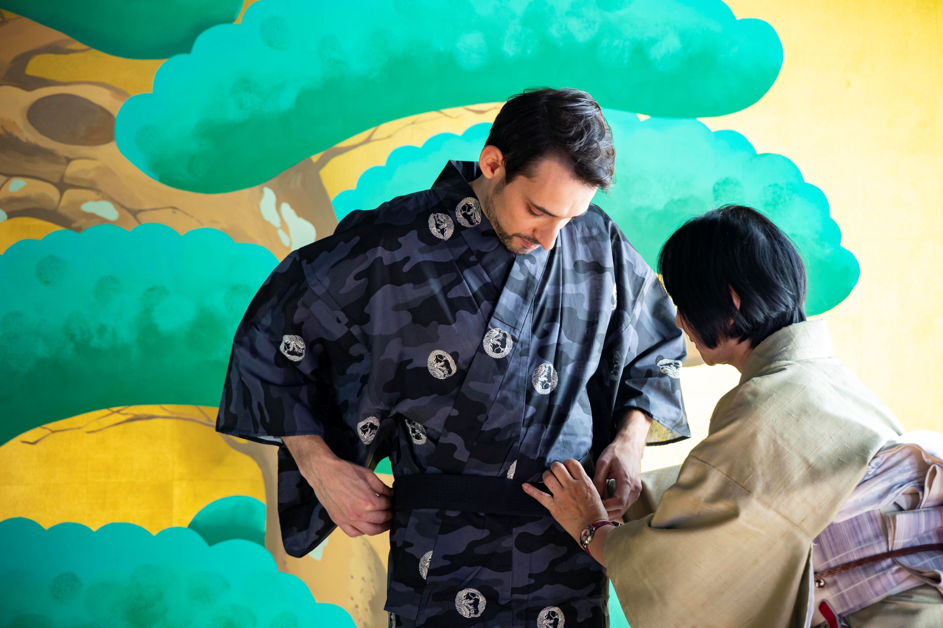 **日本の美をまとう、浴衣着付け体験** お好みの浴衣を選んで、講師の指導のもと着付けの基本を学びながら実際に着用します。 初めての方にもわかりやすいステップで丁寧にレクチャーします。 1.プログラムの説明 2.お好みの浴衣を選択 3.着付け体験 4.写真撮影