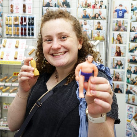 3色のスタンプを1つずつ重ね捺しすると、忍者、サムライ、着物女性などの日本の典型的な人物像が現れます。