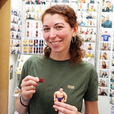 3色のスタンプを1つずつ重ね捺しすると、忍者、サムライ、着物女性などの日本の典型的な人物像が現れます。