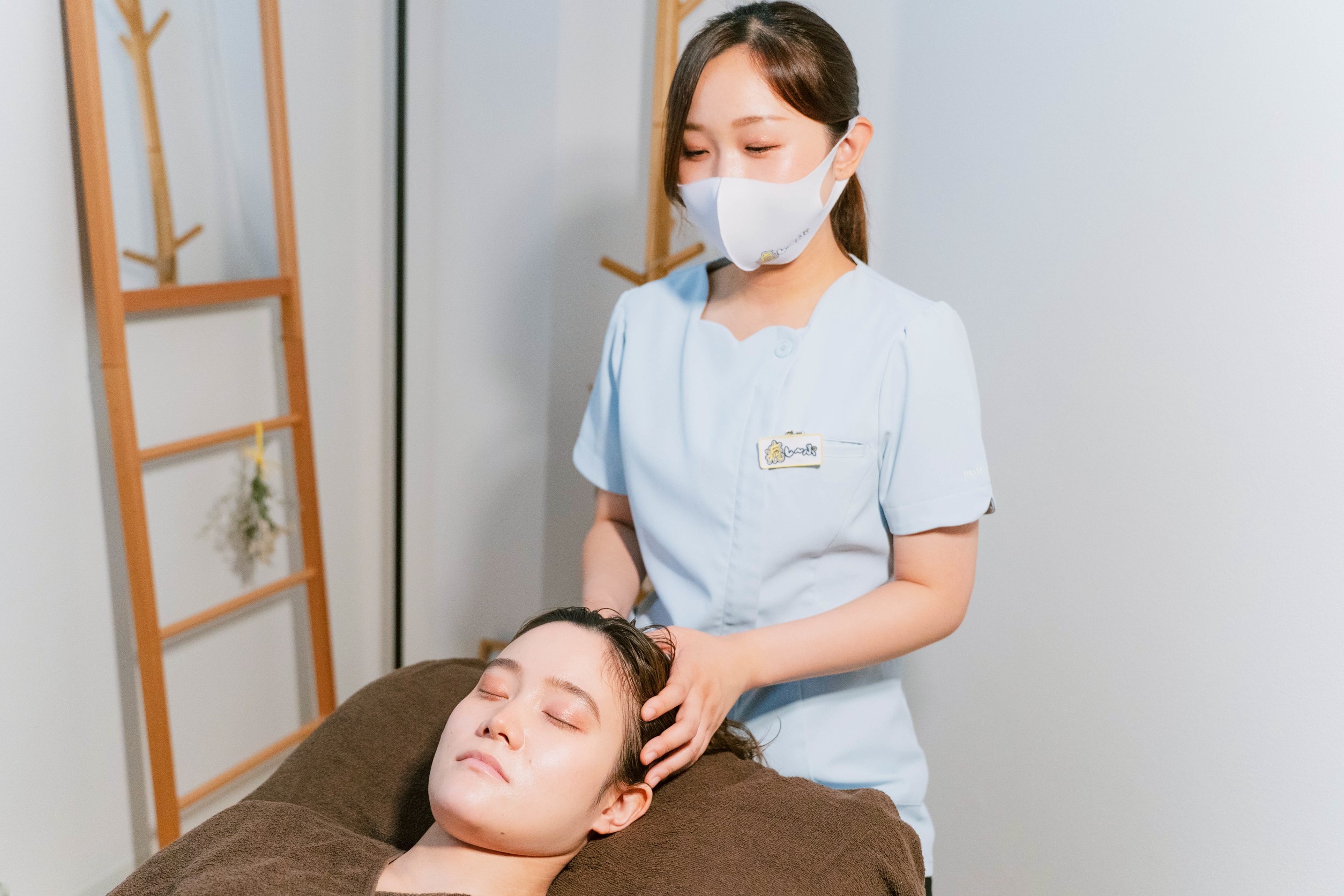当店では、日本オリジナルのドライヘッドスパをメインに、水やオイルを使わず、旅の途中でいつでも気軽に立ち寄れるのが特徴です。 経験豊富なセラピストがオールハンドで頭、首、肩をほぐし、疲労回復や自律神経の調整をサポートします。 店内は五感に響くデザインで癒しの空間を演出し、抹茶もご用意しており、リラックス効果が持続します。旅行者が快適さと深い休息を求めるのに理想的な場所です。